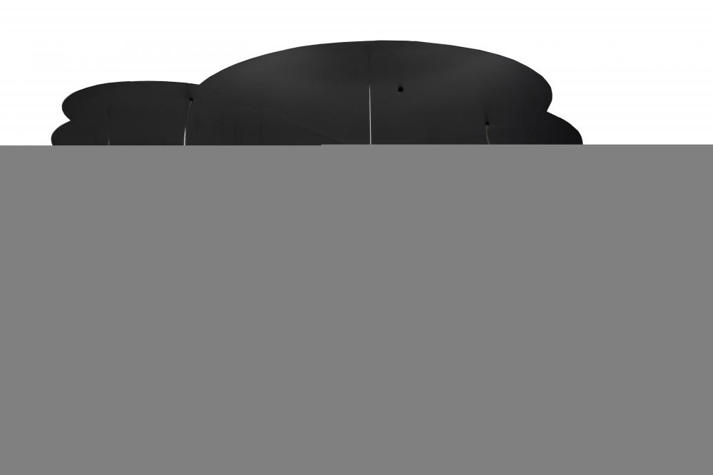 Modern sophisticated system featuring extraordinary elements of light. Ecliptic Crystal Idalight rings illuminate around satellite orbs appearing to float in space with a dramatic interplay of light and shadow. Supported by sturdy aircraft cables to Solar Black finished cloud canopy. Energy saving; maintenance free LED arrays deliver ambient illumination with long life; strong CRI and lumen output with full range dimming. Made with Pride by Meyda artisans in Yorkville; New York.