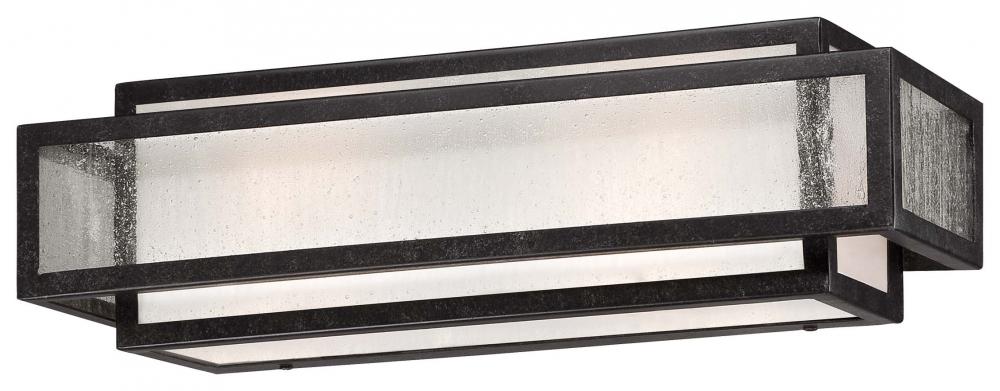 2 Light Bath in Aged Charcoal Finish with Clear Seeded and Etched White Glass