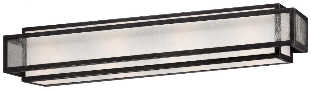4 Light Bath in Aged Charcoal Finish with Clear Seeded and Etched White Glass