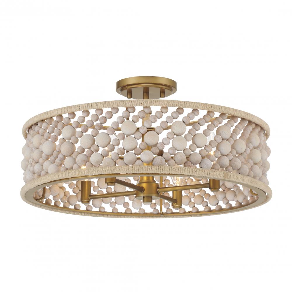 4-Light Semi Flush - Painted Legacy Brass with Bleached Wooden Beads