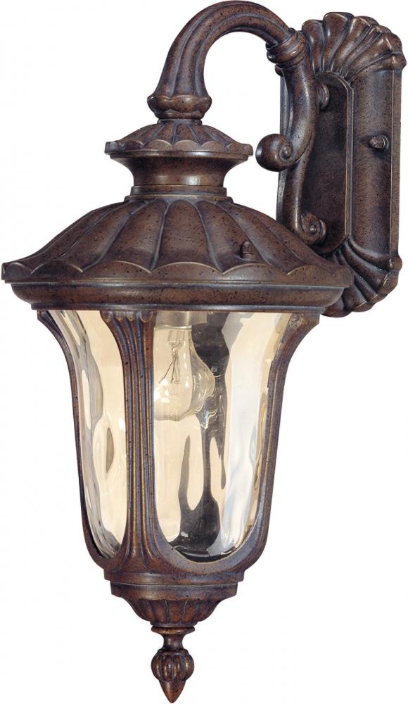 1-Light Small Outdoor Wall Lantern (Arm Down) in Fruitwood Finish and Amber Water Glass