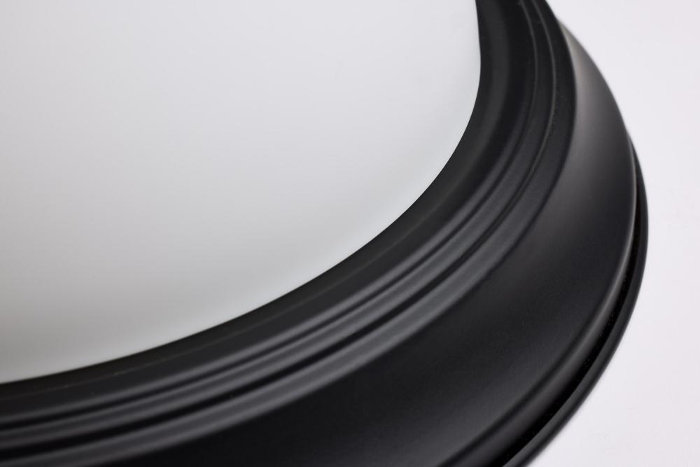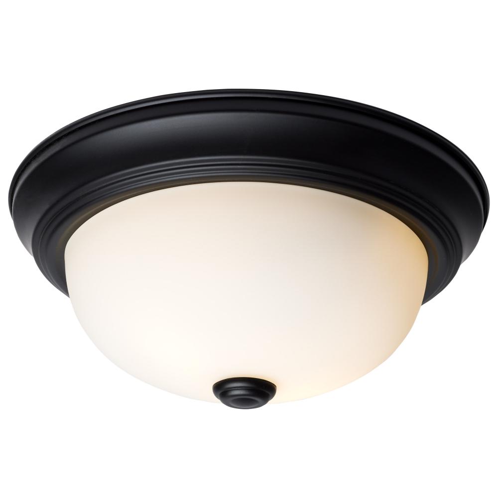 SATCO NUVO's transitional fixtures deliver on high quality and functionality. Stylish in a matte black finish with a glass center lock white opal lens, they are offered in 11, 13, or 15 inch diameters. Accepting standard A19 medium base lamps (not incl