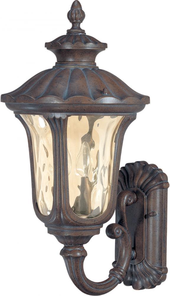 2-Light Medium Outdoor Wall Lantern (Arm Up) in Fruitwood Finish and Amber Water Glass