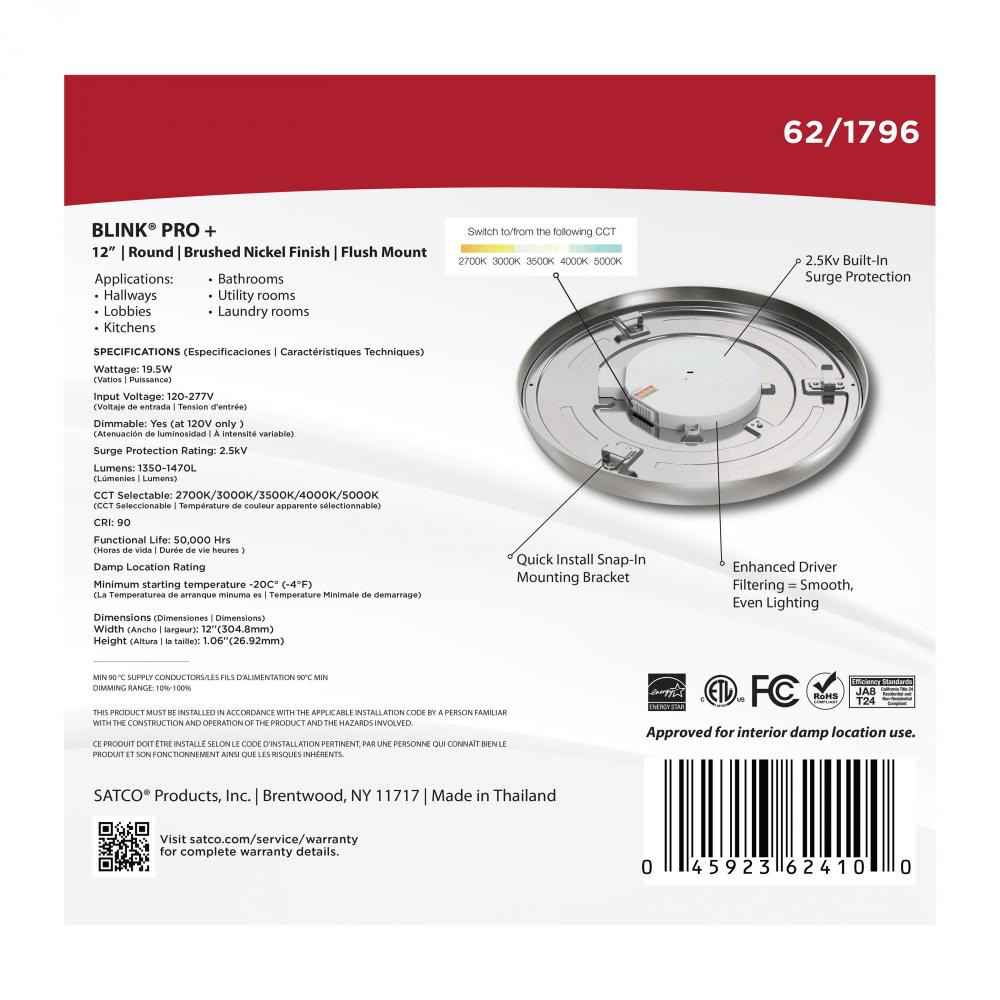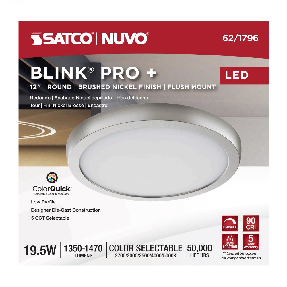 Blink Pro Plus; 19.5 Watt; 12 Inch; CCT Selectable; Brushed Nickel Finish 120/277 Volt; Round