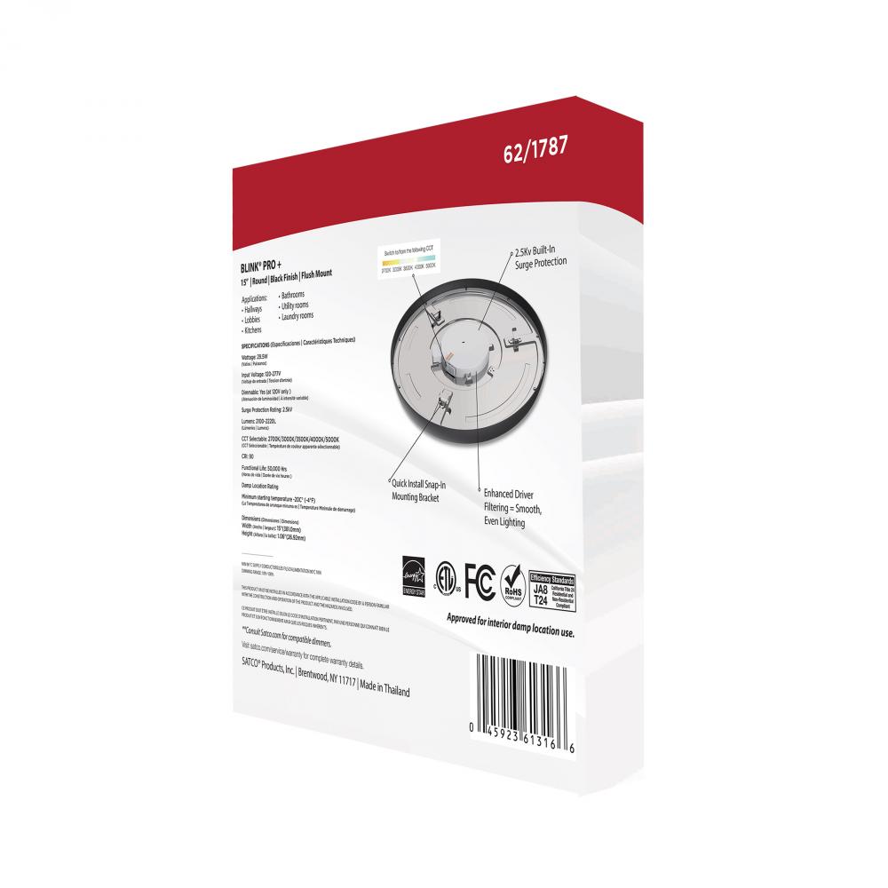 Blink Pro Plus; 29.5 Watt; 15 in.; Surface Mount LED; CCT Selectable; 90 CRI; Black Finish; 120/277