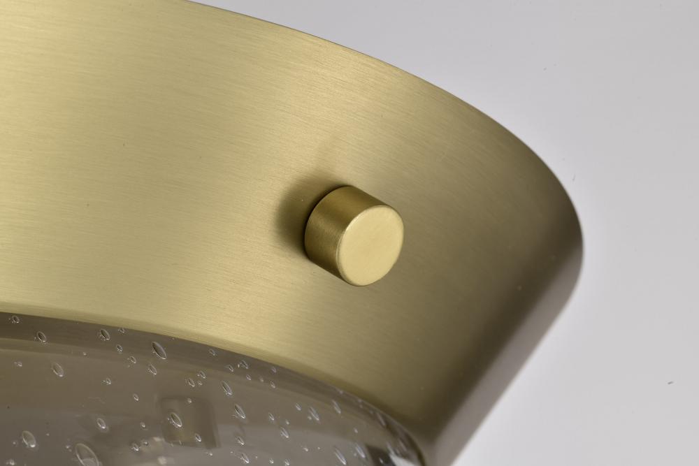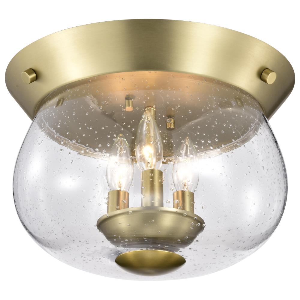 Boliver 3 Light Flush Mount; Vintage Brass Finish; Clear Seeded Glass