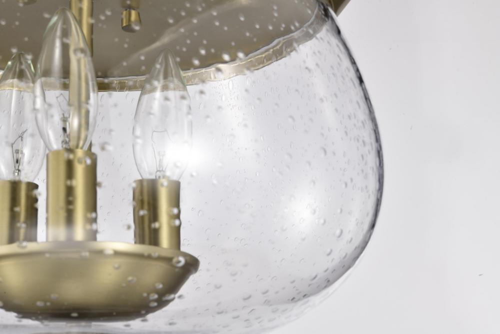 60/7804 - Boliver 3 Light Pendant; 14 Inches; Vintage Brass Finish; Clear Seeded Glass