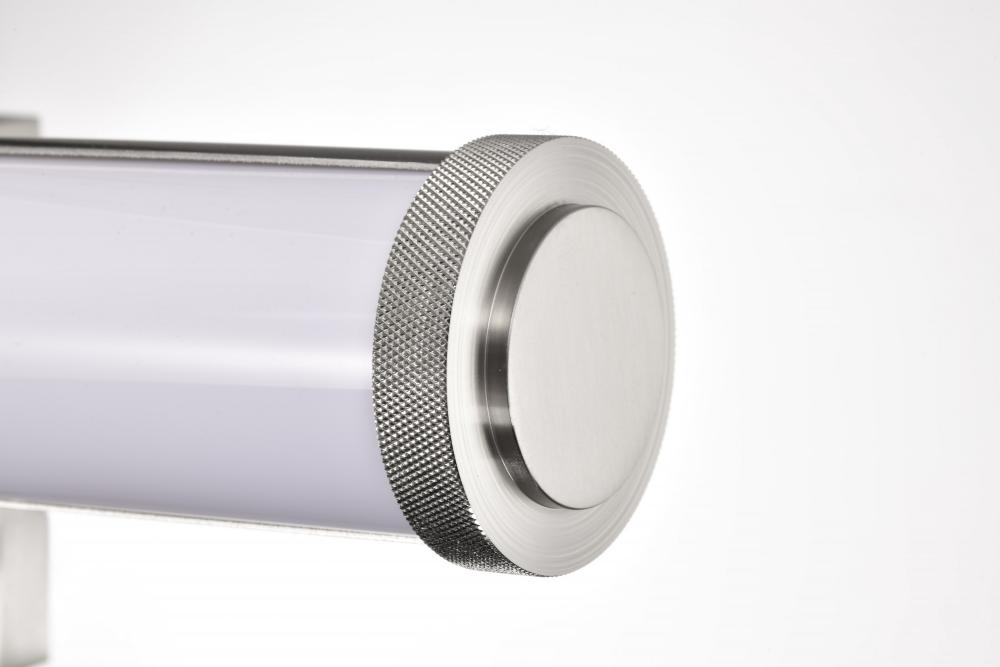 Unveil the beauty of modern design with the Cora 62-2371 LED vanity light, where every detail is crafted to perfection. Featuring elegant, knurled end knobs and a sleek, curved opaque acrylic lens, this LED bath vanity blends sophistication with innovative