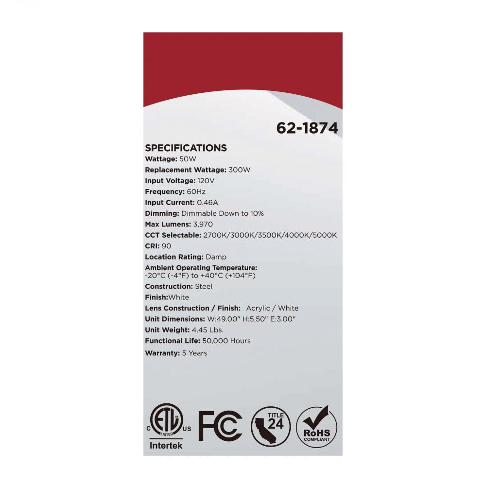 62/1874 - Crispo; LED 49 Inch Vanity; White Finish; 27K/3K/35K/4K/5K CCT Selectable