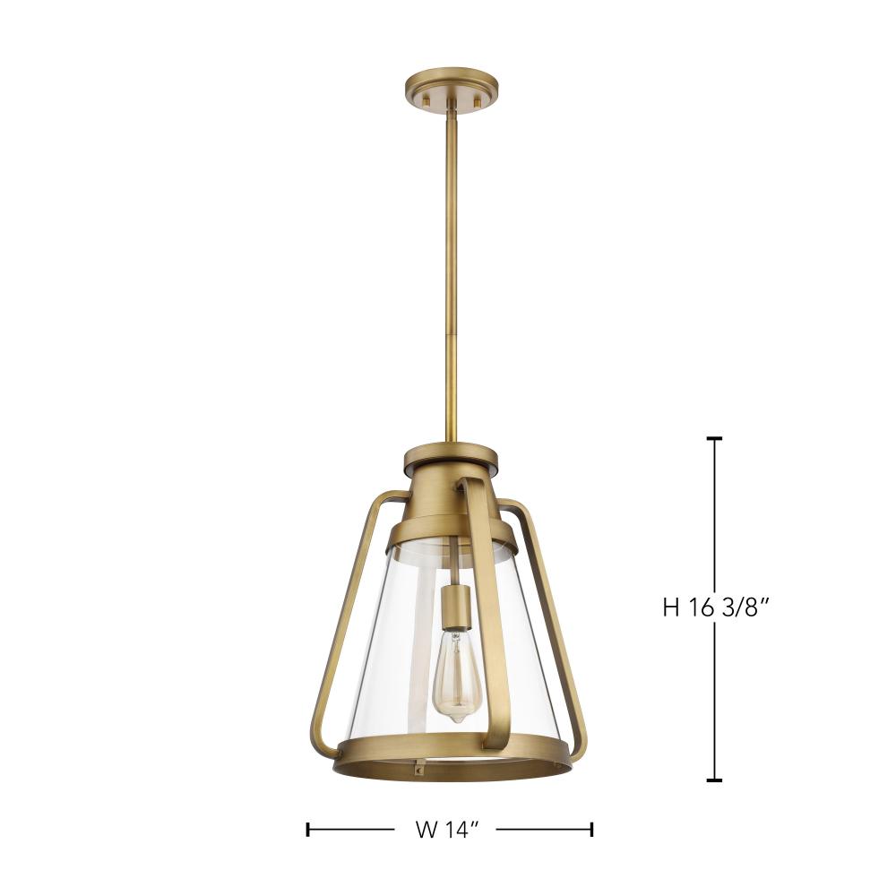 60/7563 - Everett; 1 Light; 14 Inch Pendant; Natural Brass with Clear Glass