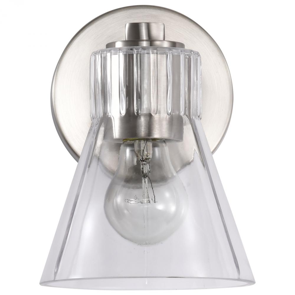 Gianna; 1 Light Vanity; Brushed Nickel Finish; Clear Glass