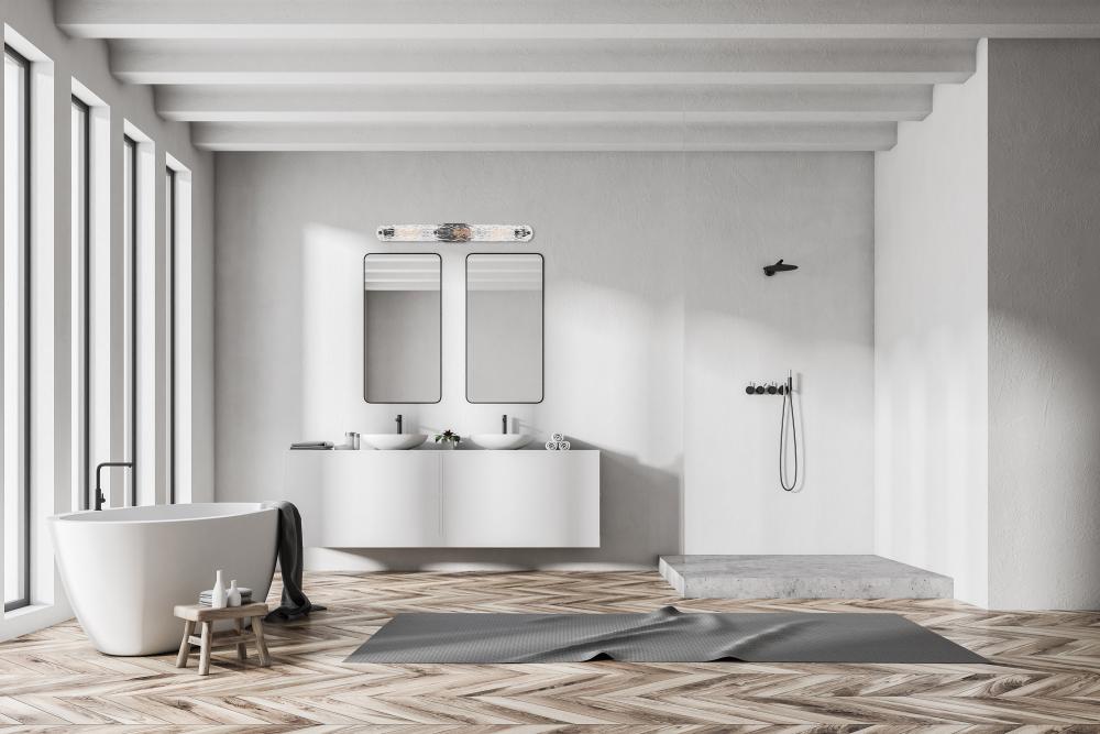 The Glacier Collection is comprised of vanity lights and a matching flush mount, styled with contemporary elements and rich finishes. A deep black adorns the fixture body and socket covers, an arresting ice glass completes the sleek silhouette. Bring panac
