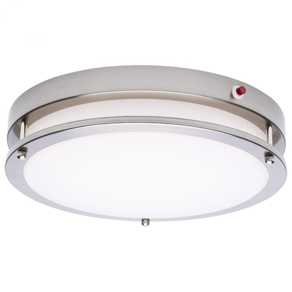 The SATCO NUVO 62-1890 13-Inch Glamour LED flush mount fixture in brushed nickel features a built-in emergency battery backup that provides up to 90 minutes of illumination during power outages-offering critical reliability with an elegant design. An integ
