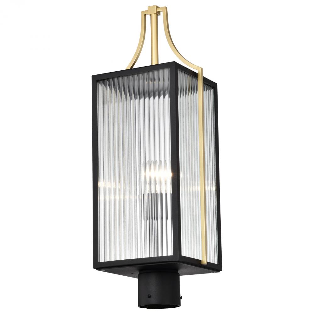 60/8504 - Holden; Outdoor Post Lantern; Gold and Black Finish; Clear Glass