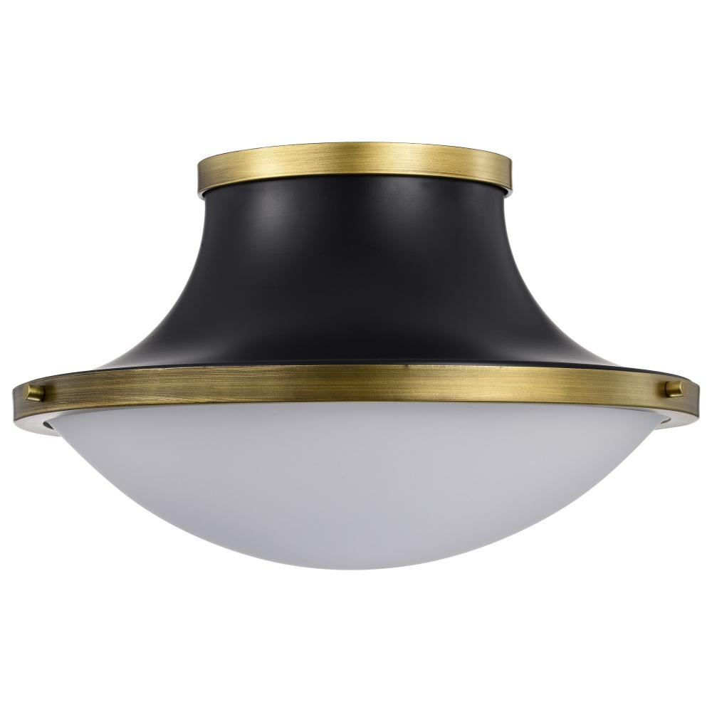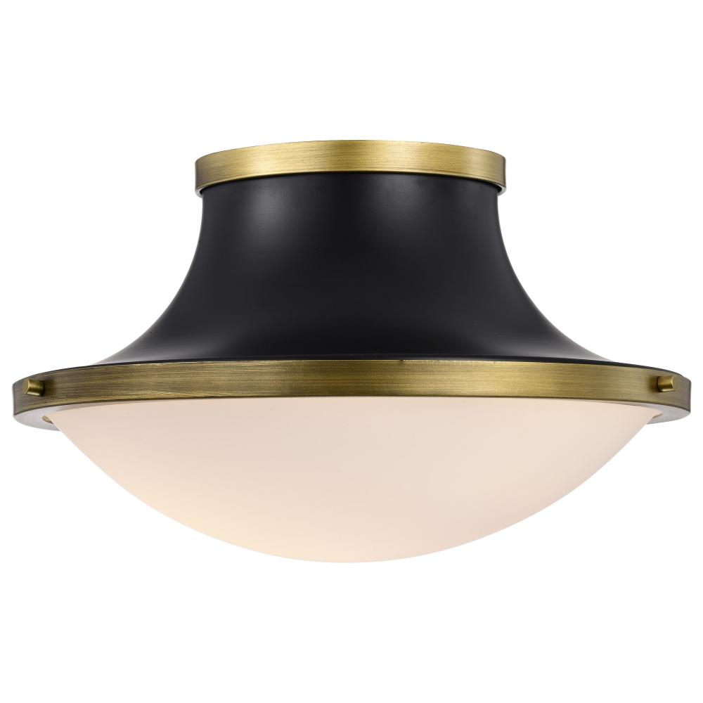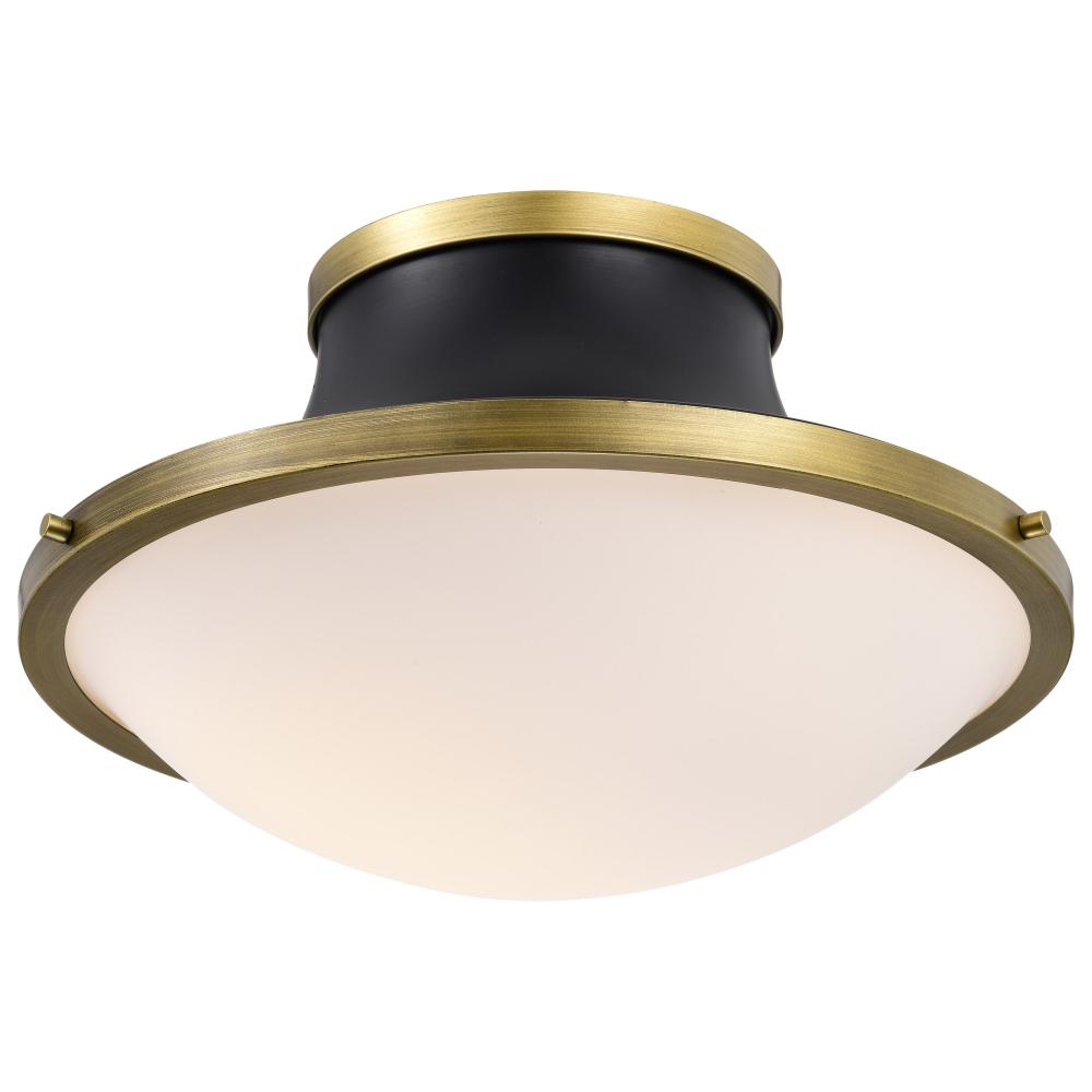 60/7905 - Lafayette 1 Light Flush Mount Fixture; 14 Inches; Matte Black Finish with Natural Brass Accents and