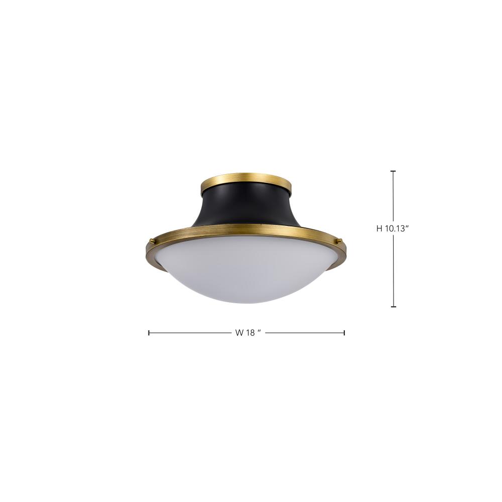 60/7906 - Lafayette 3 Light Flush Mount Fixture; 18 Inches; Matte Black Finish with Natural Brass Accents and