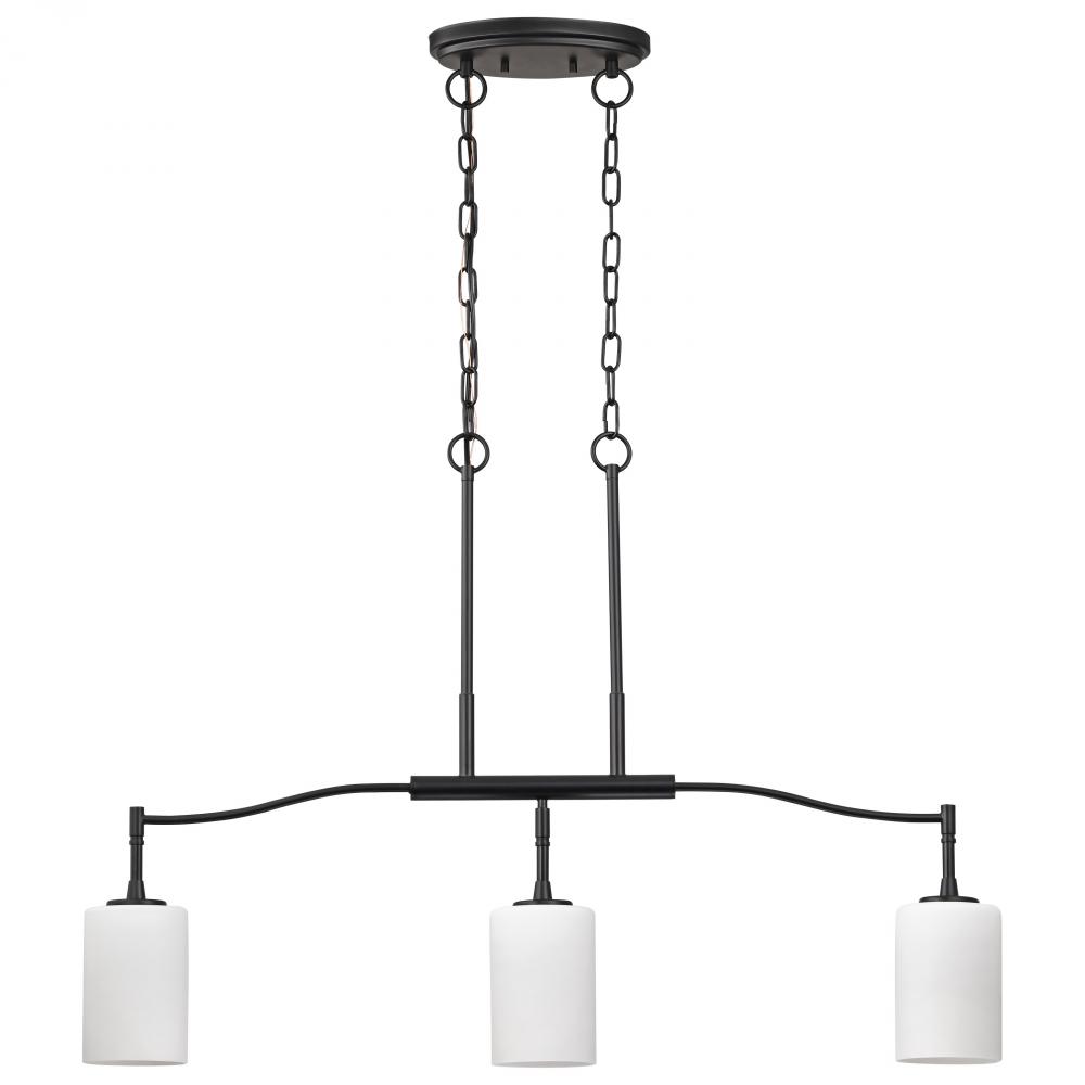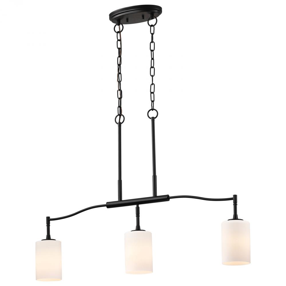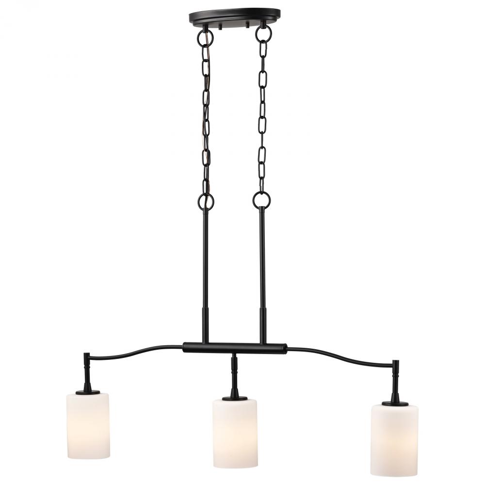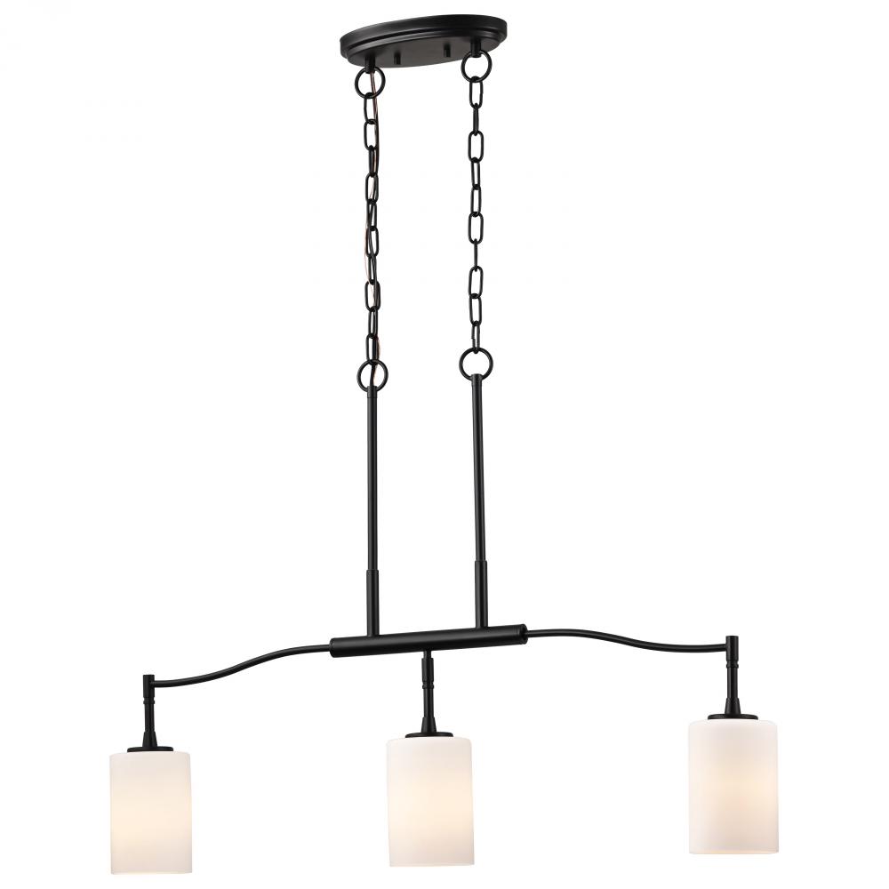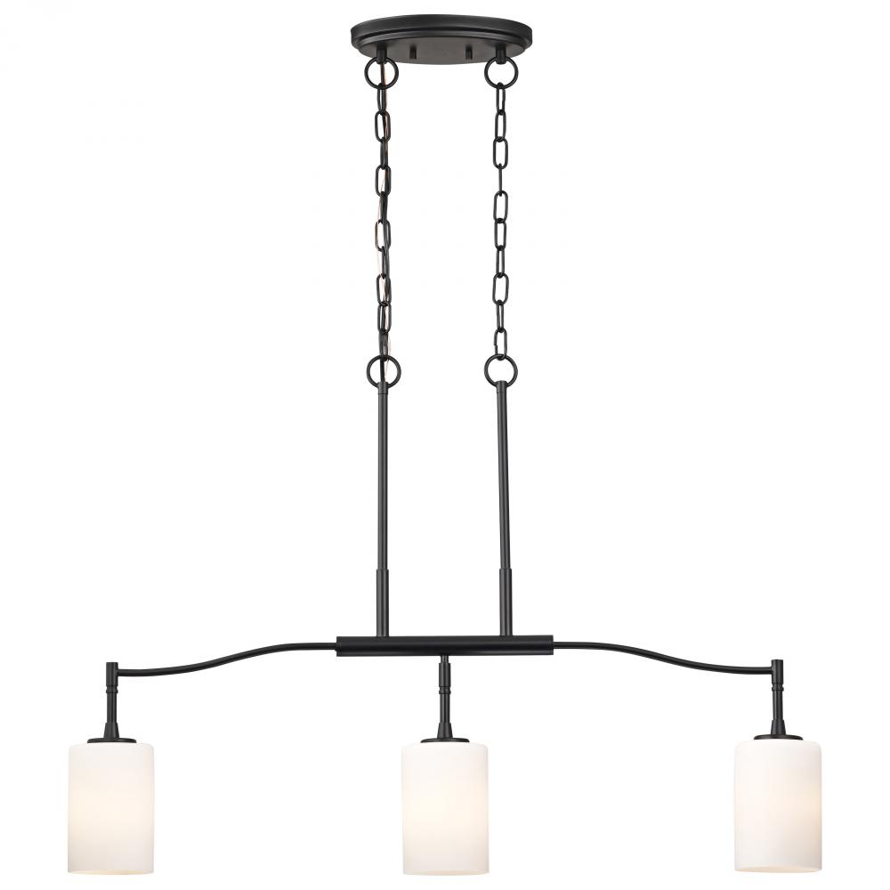 Liam; 3 Light Island Pendant; Matte Black; White Opal Glass
