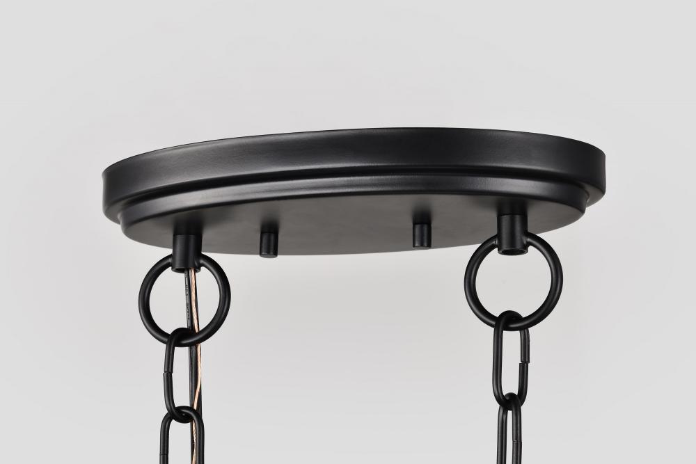 Liam; 6 Light Chandelier; Matte Black; White Opal Glass