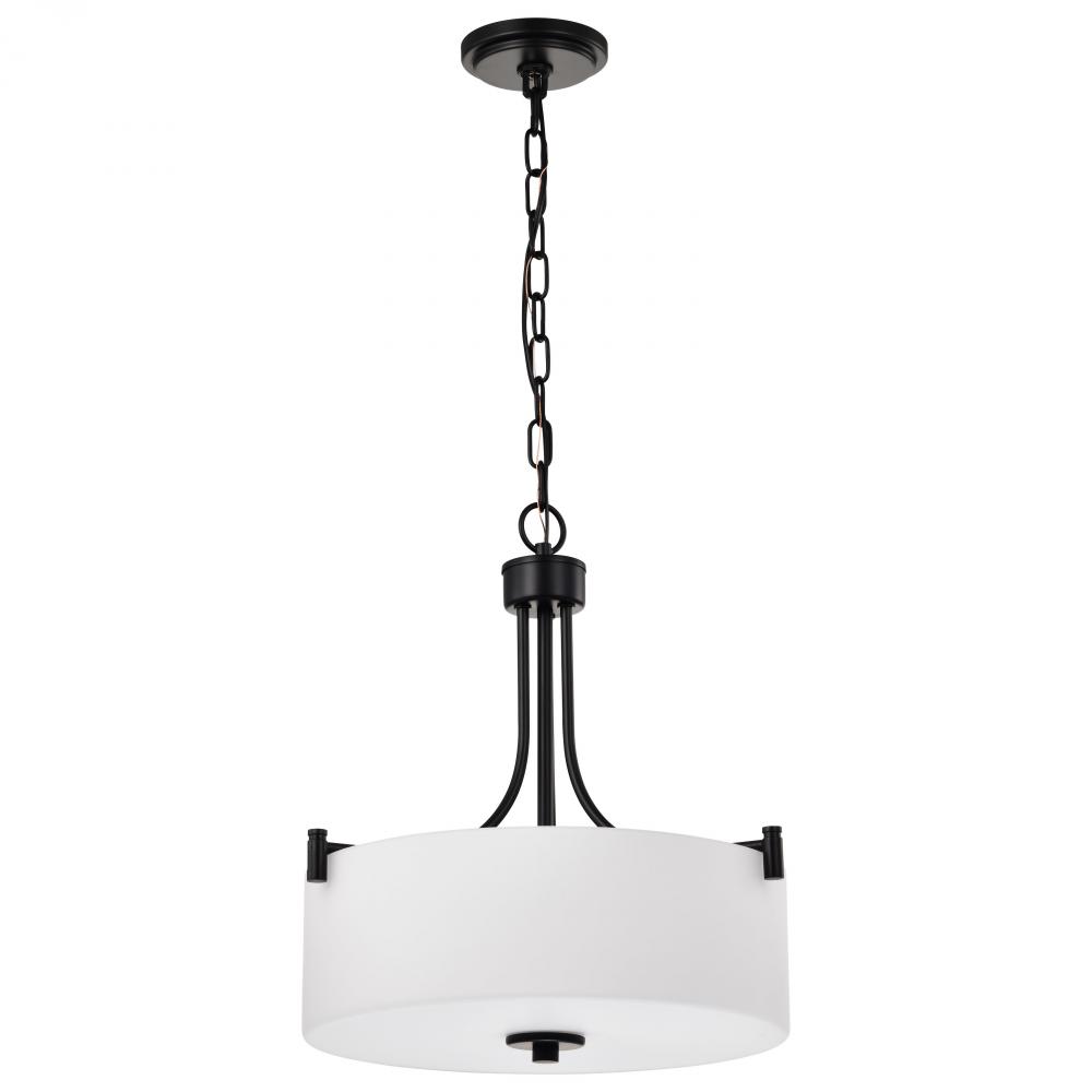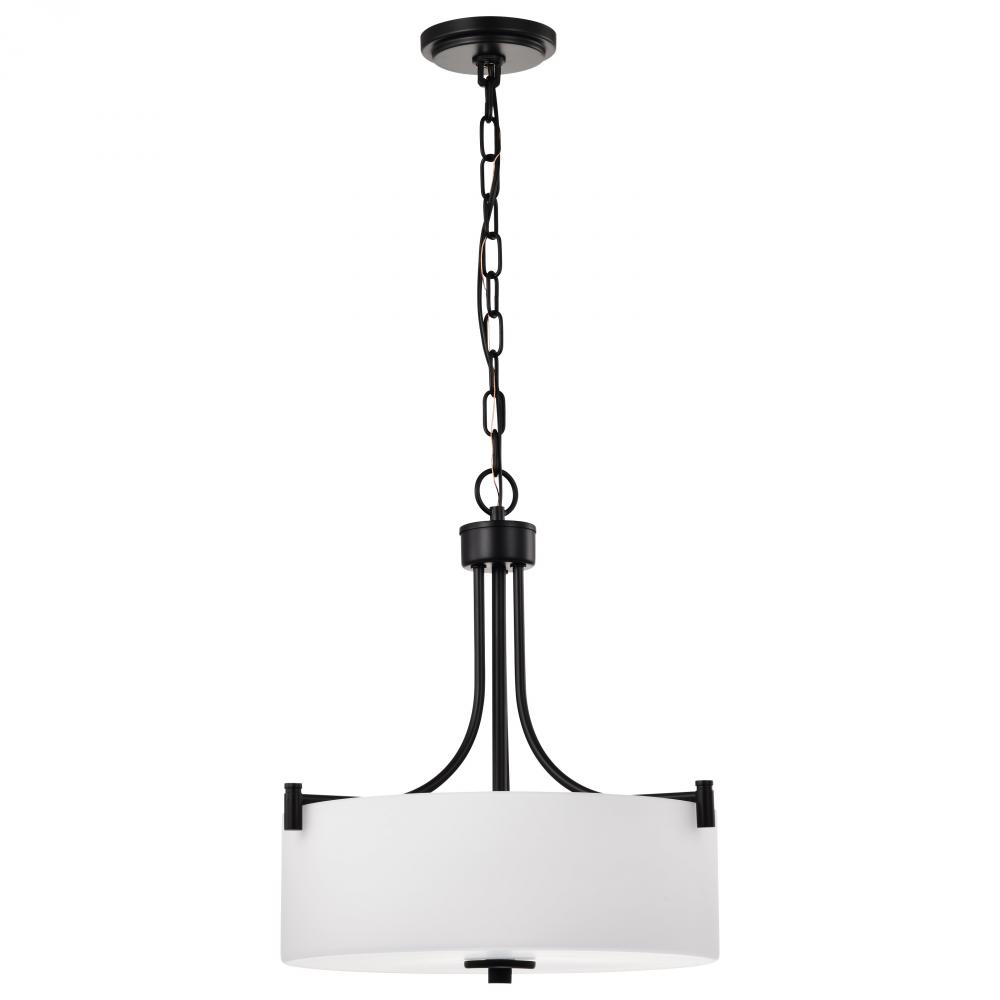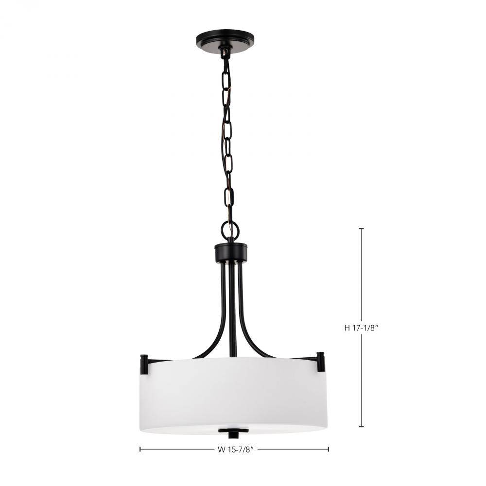 Liam; 3 Light Pendant; Matte Black; White Opal Glass