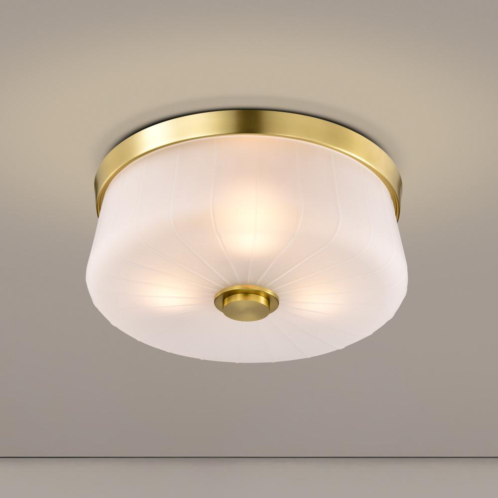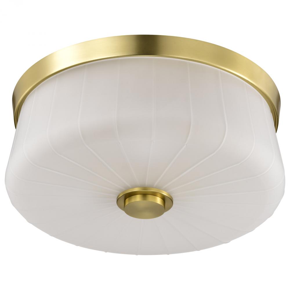 60/8230 - Lune; 3 Light Flush Mount; Vintage Brass Finish; Etched White Glass