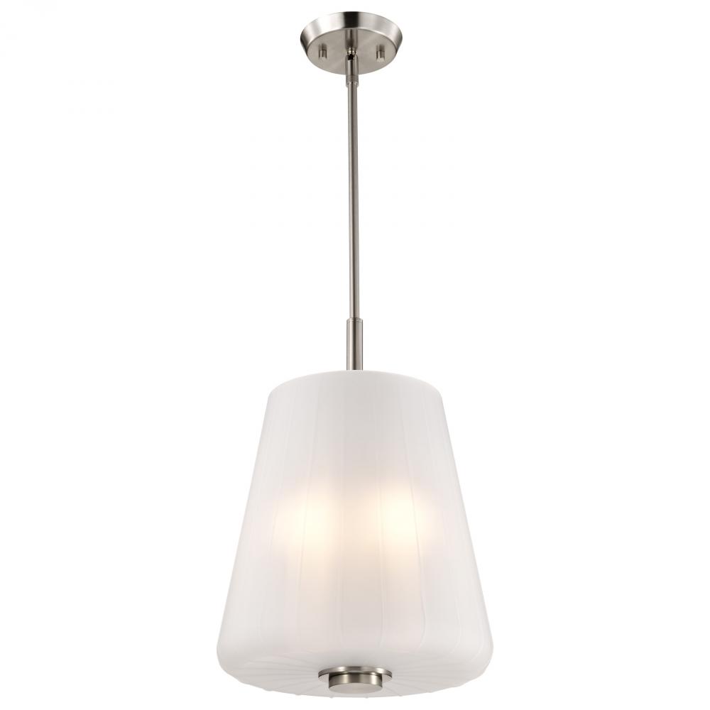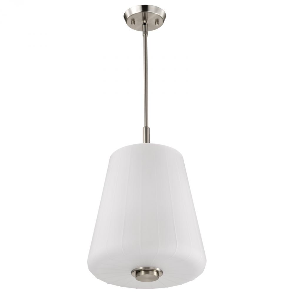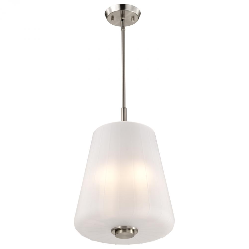 Lune; 3 Light Pendant; Brushed Nickel Finish; Etched White Glass