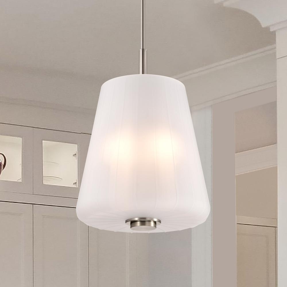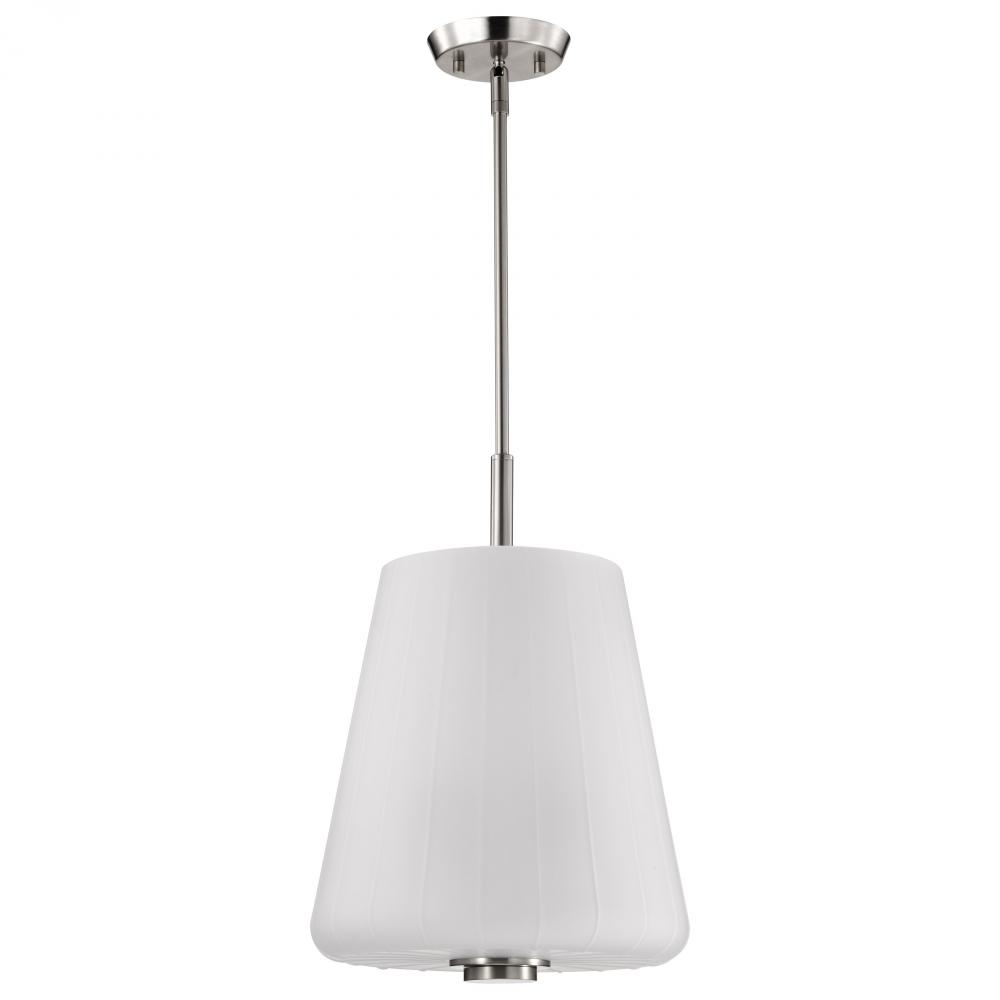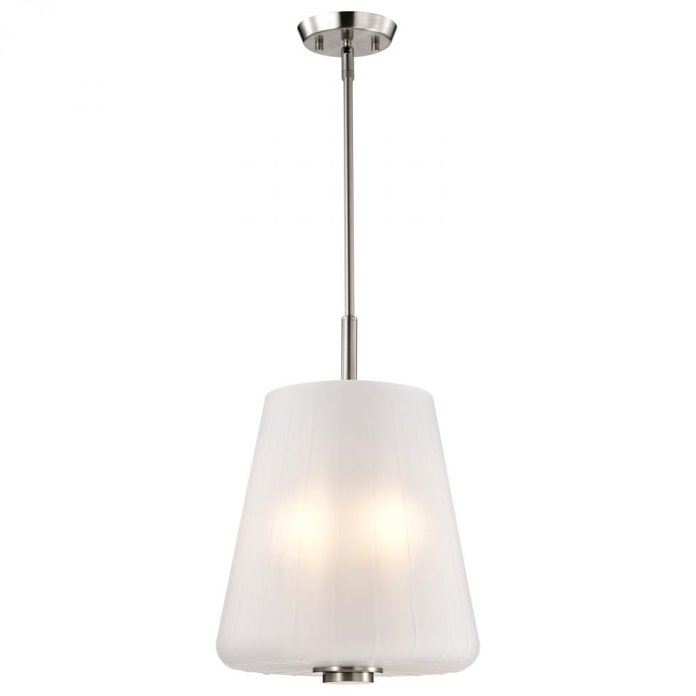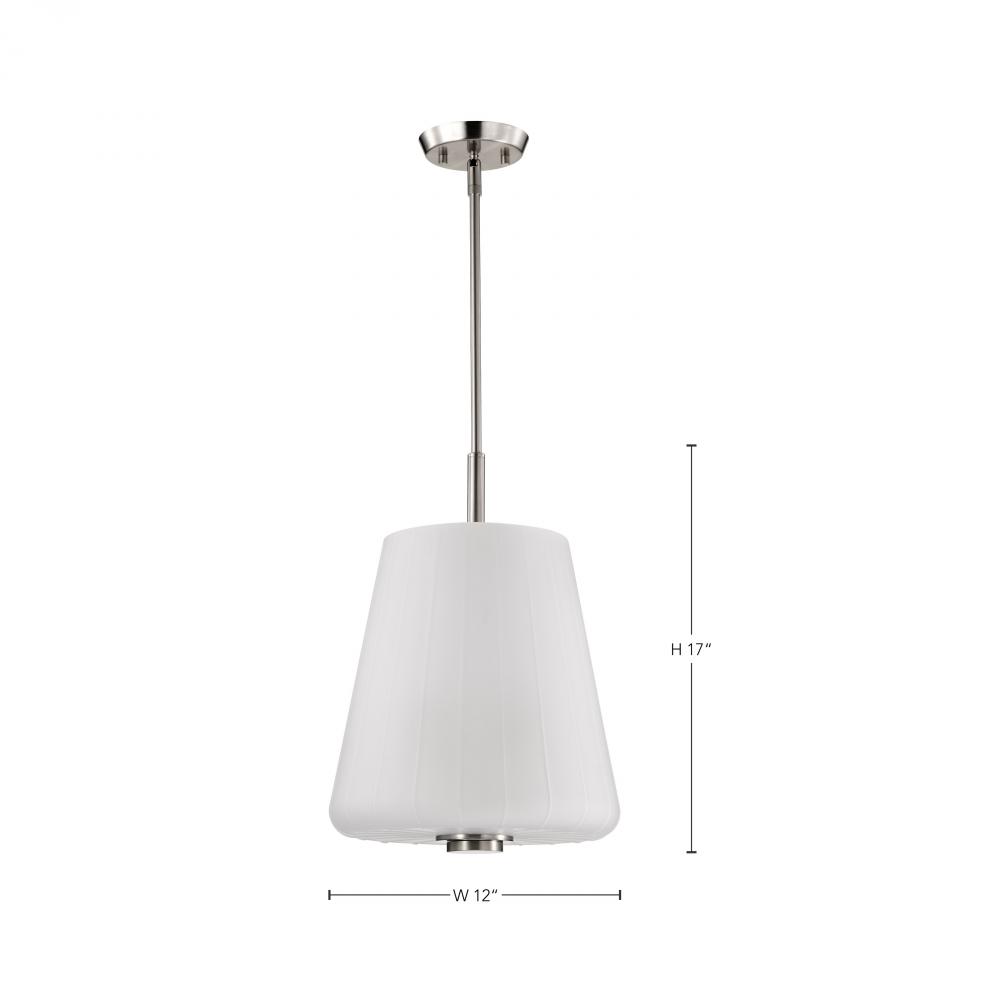Lune; 3 Light Pendant; Brushed Nickel Finish; Etched White Glass