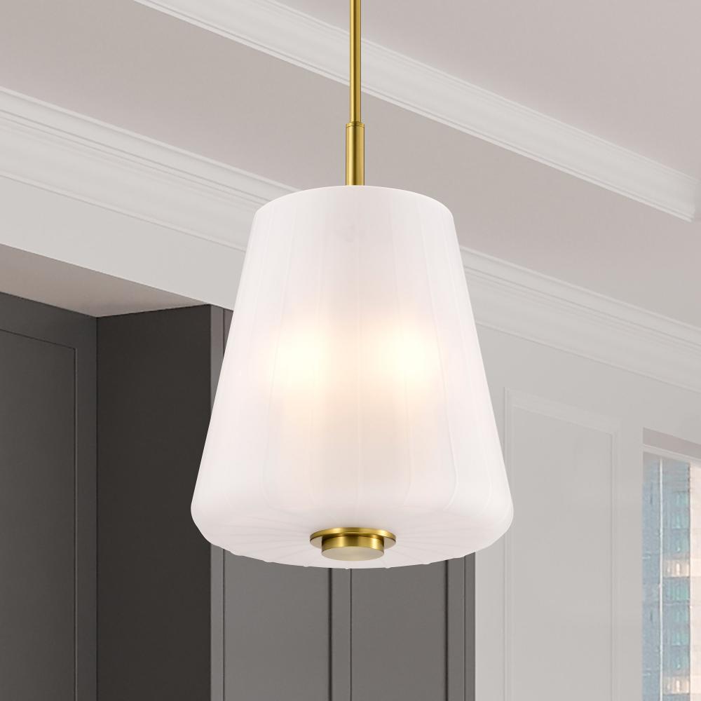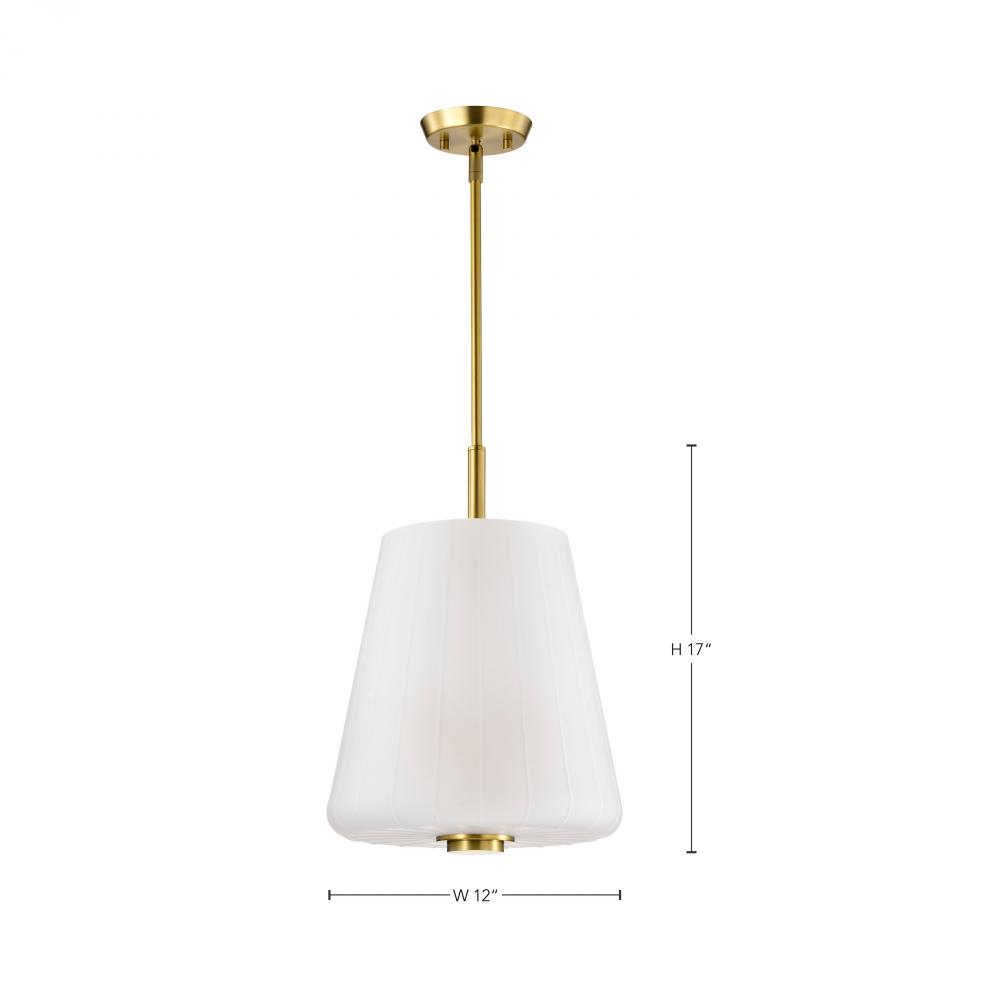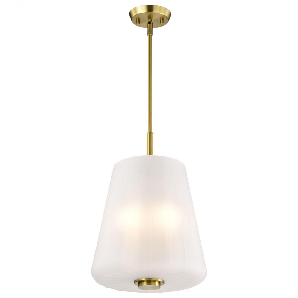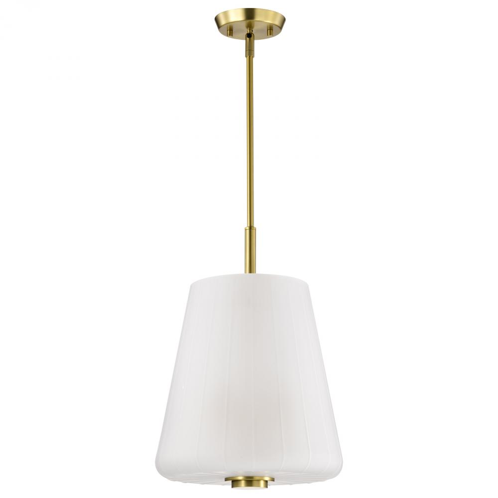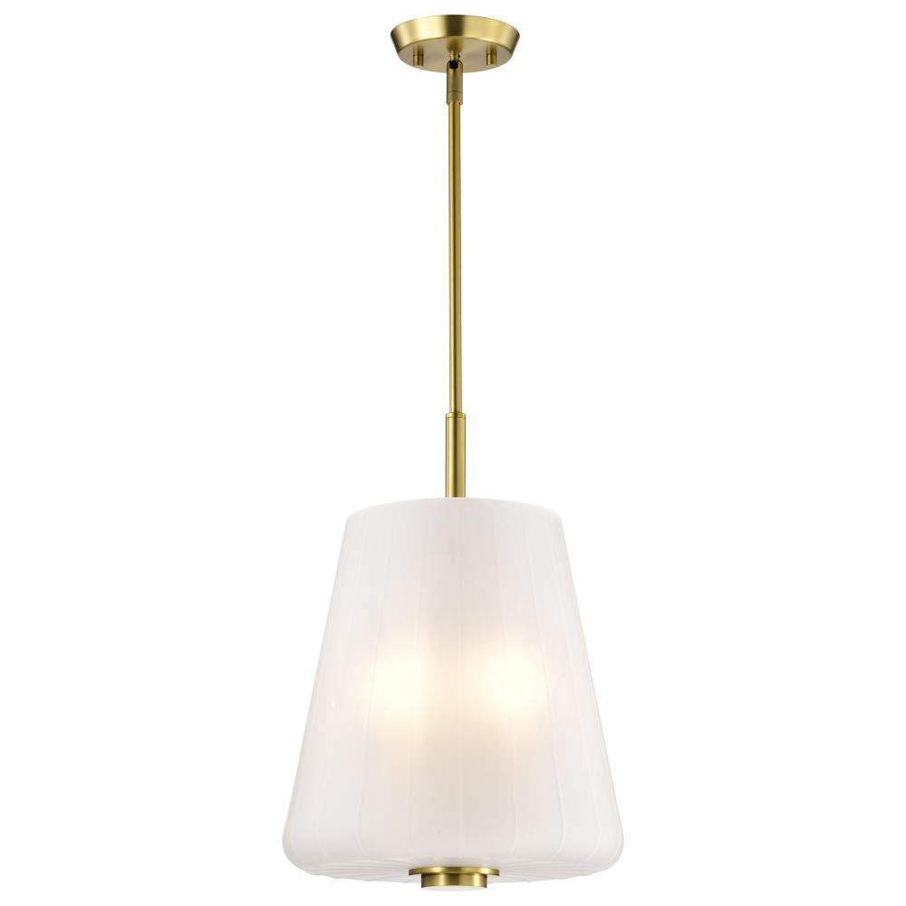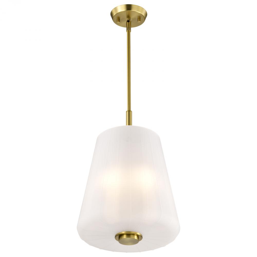 Lune; Mini Pendant; Vintage Brass Finish; Etched White Glass
