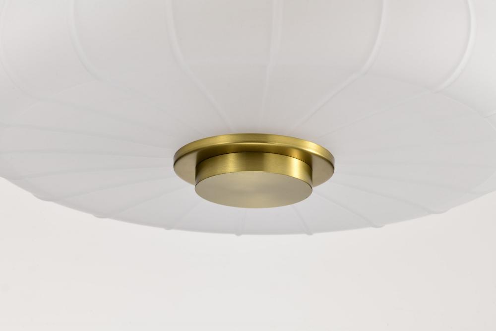 60/8230 - Lune; 3 Light Flush Mount; Vintage Brass Finish; Etched White Glass