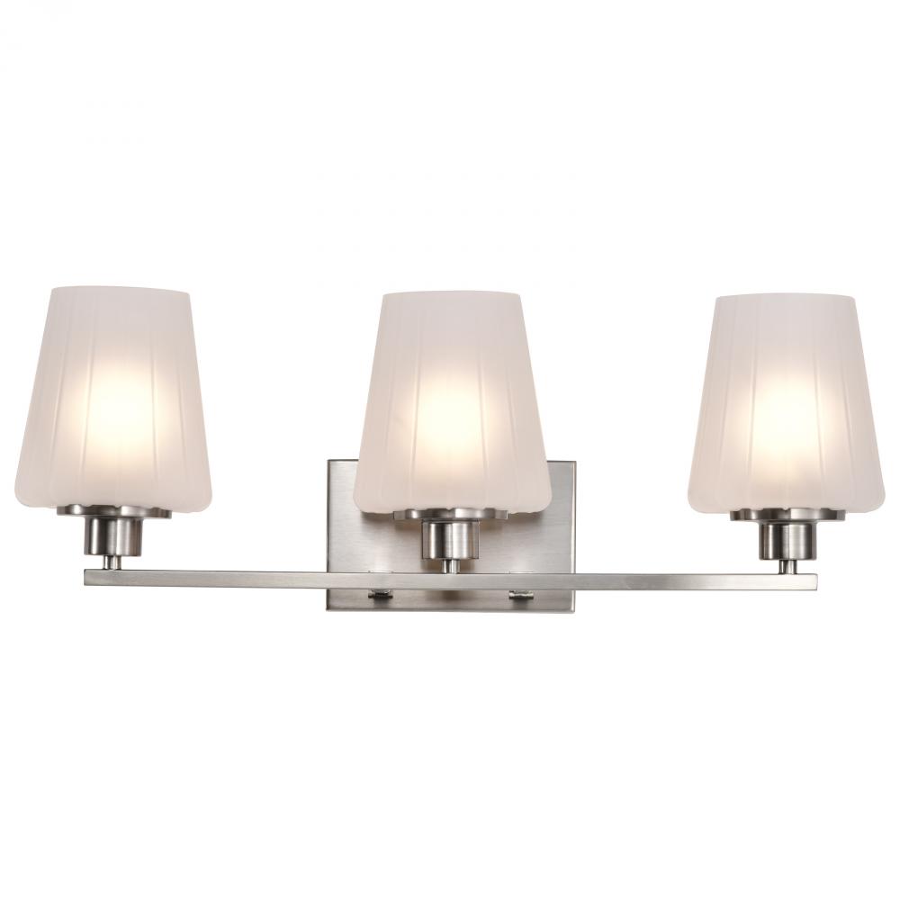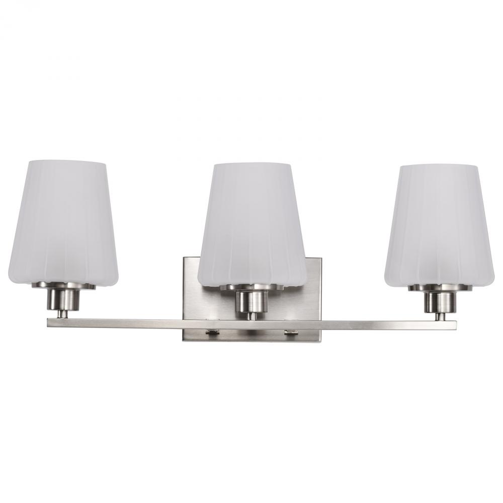 Lune; 3 Light Vanity; Brushed Nickel Finish; Etched White Glass