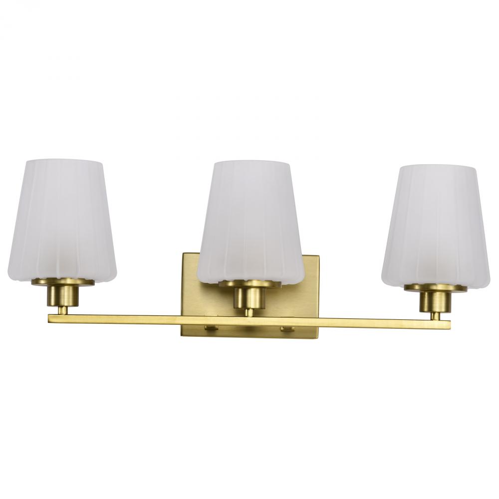 60/8233 - Lune; 3 Light Vanity; Vintage Brass Finish; Etched White Glass