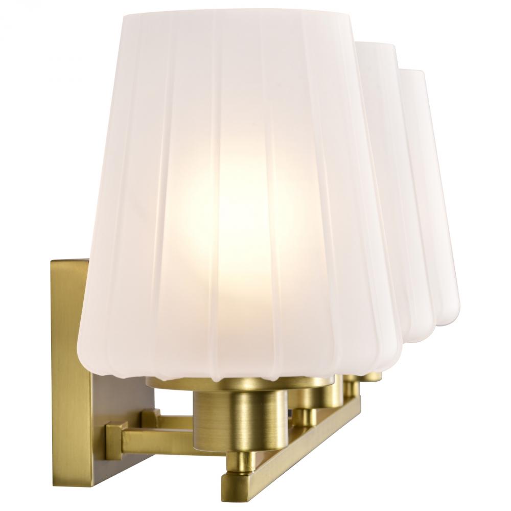 Lune; 3 Light Vanity; Vintage Brass Finish; Etched White Glass