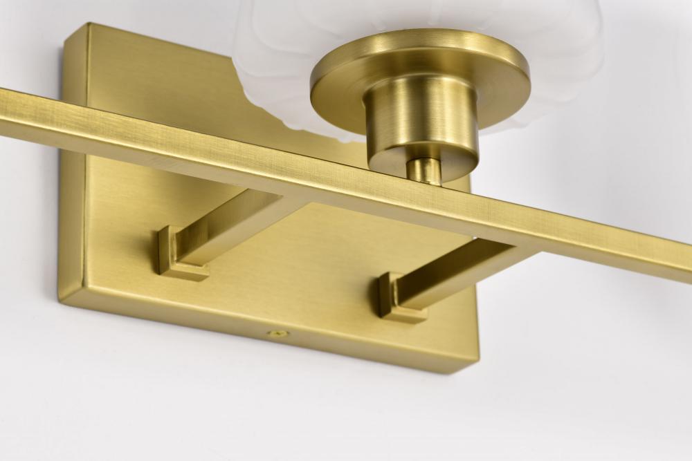 Lune; 2 Light Vanity; Vintage Brass Finish; Etched White Glass