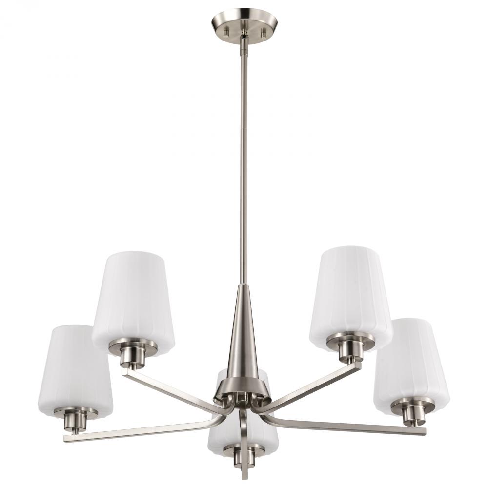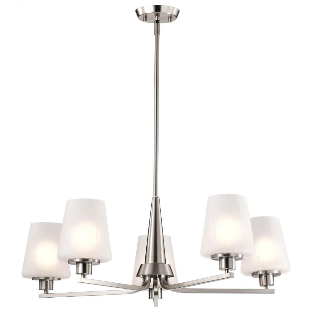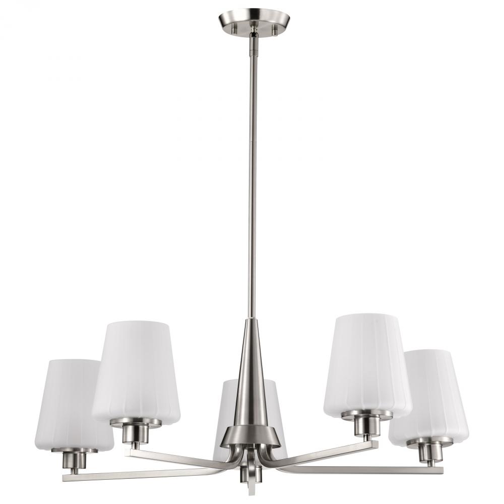 Lune; 5 Light Chandelier; Brushed Nickel Finish; Etched White Glass