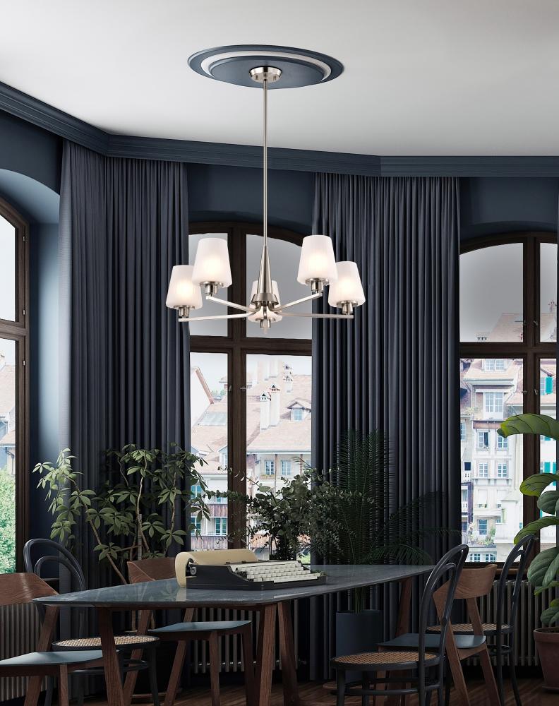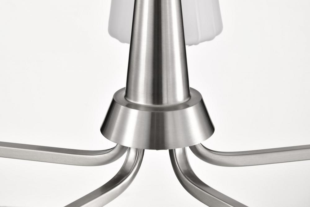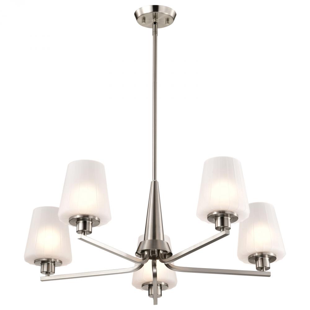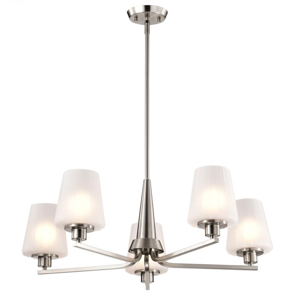 Lune; 5 Light Chandelier; Brushed Nickel Finish; Etched White Glass