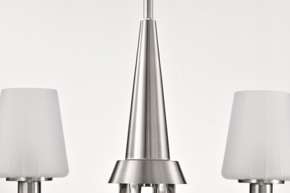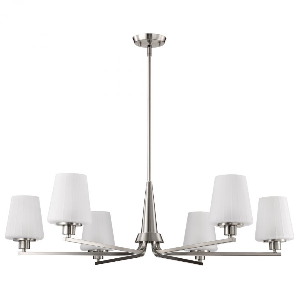 Lune; 6 Light Chandelier; Brushed Nickel Finish; Etched White Glass