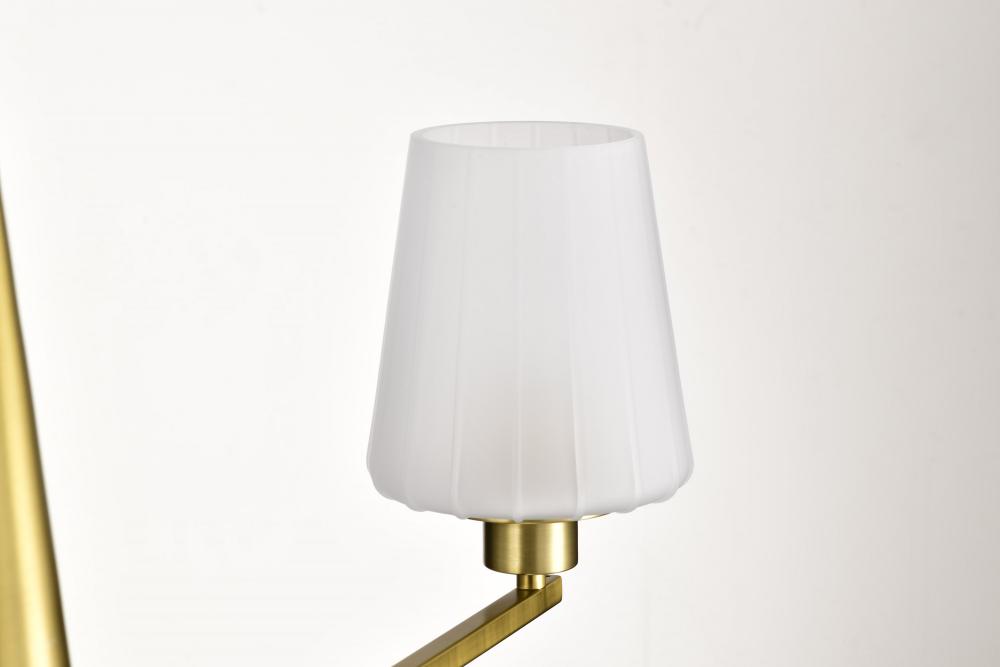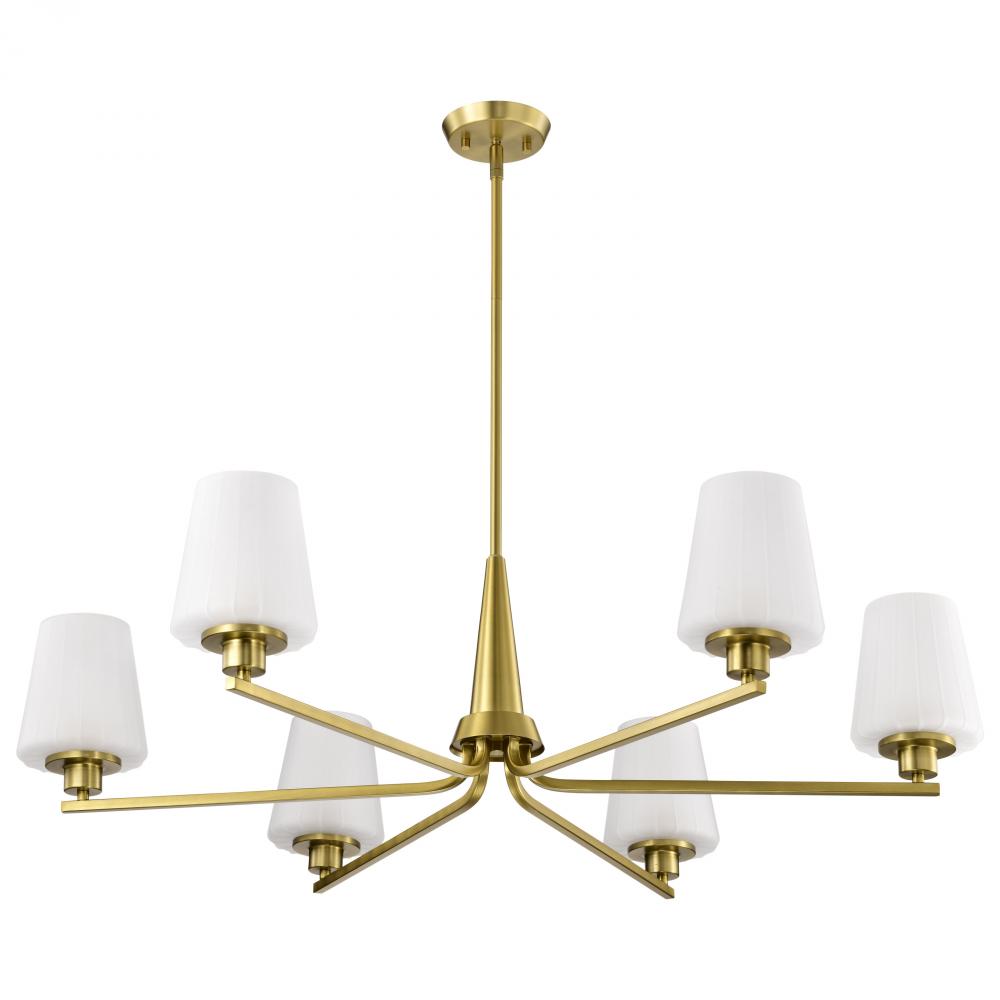 Lune; 6 Light Chandelier; Vintage Brass Finish; Etched White Glass