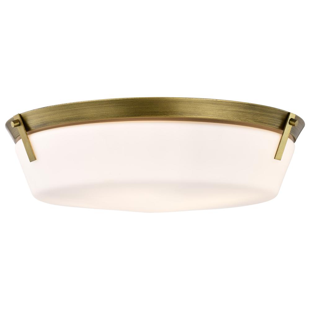 60/7750 - Rowen 3 Light Flush Mount; Natural Brass Finish; Etched White Glass