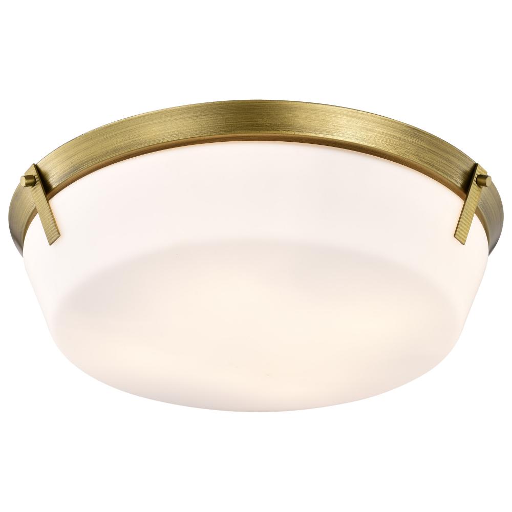 Rowen 3 Light Flush Mount; Natural Brass Finish; Etched White Glass