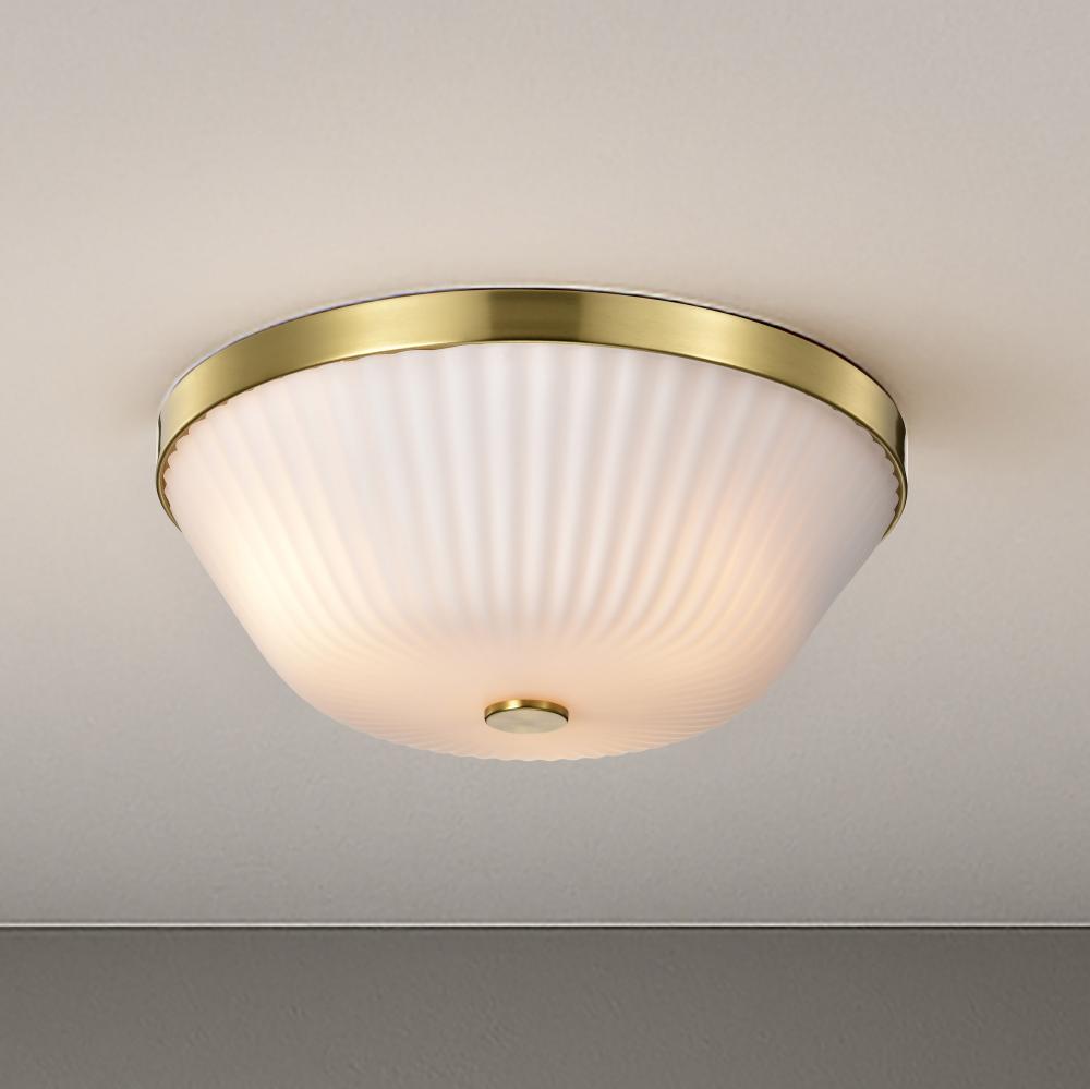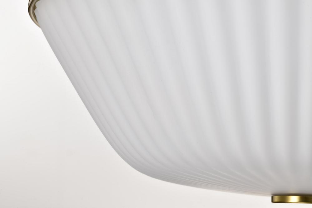 Royale; 3 Light Flush Mount; Burnished Brass Finish; Ribbed White Glass