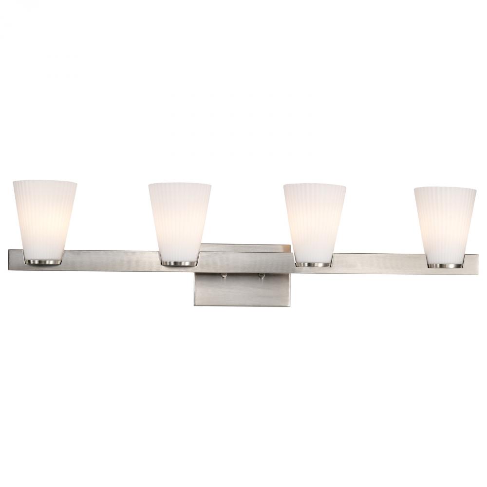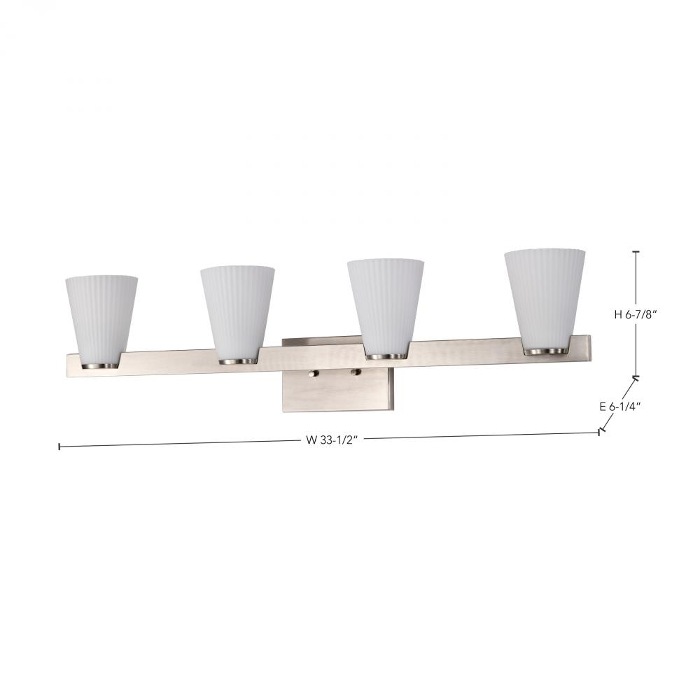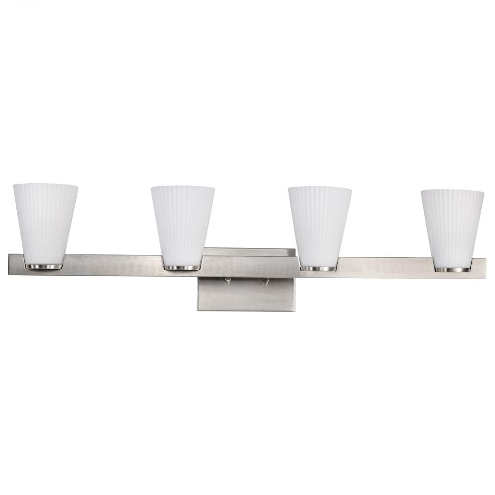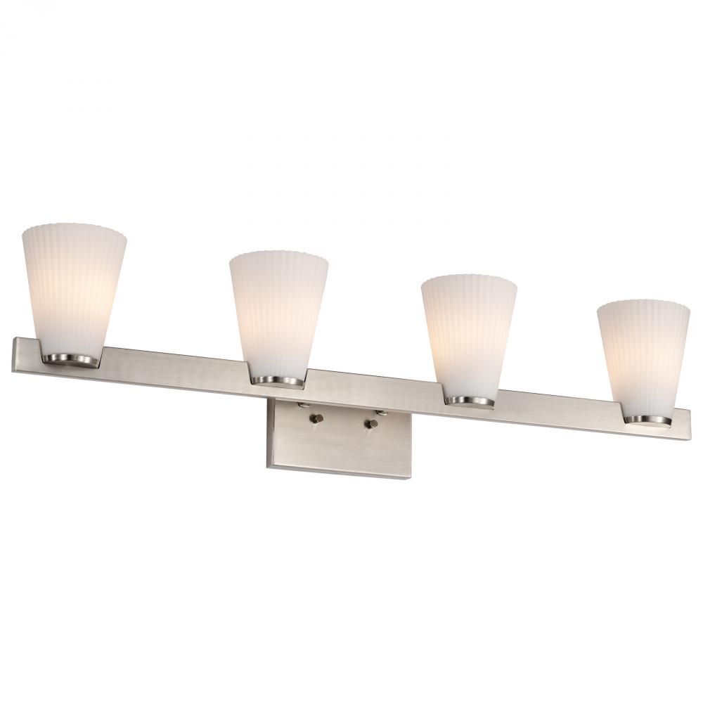 60/8734 - Royale; 4 Light Vanity; Brushed Nickel Finish; Ribbed White Glass