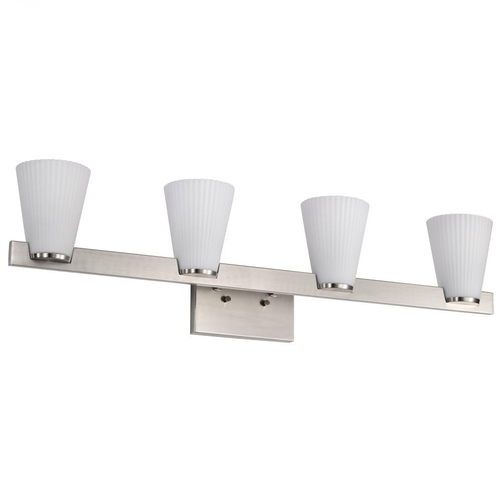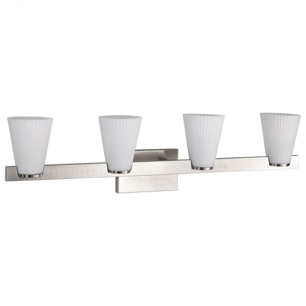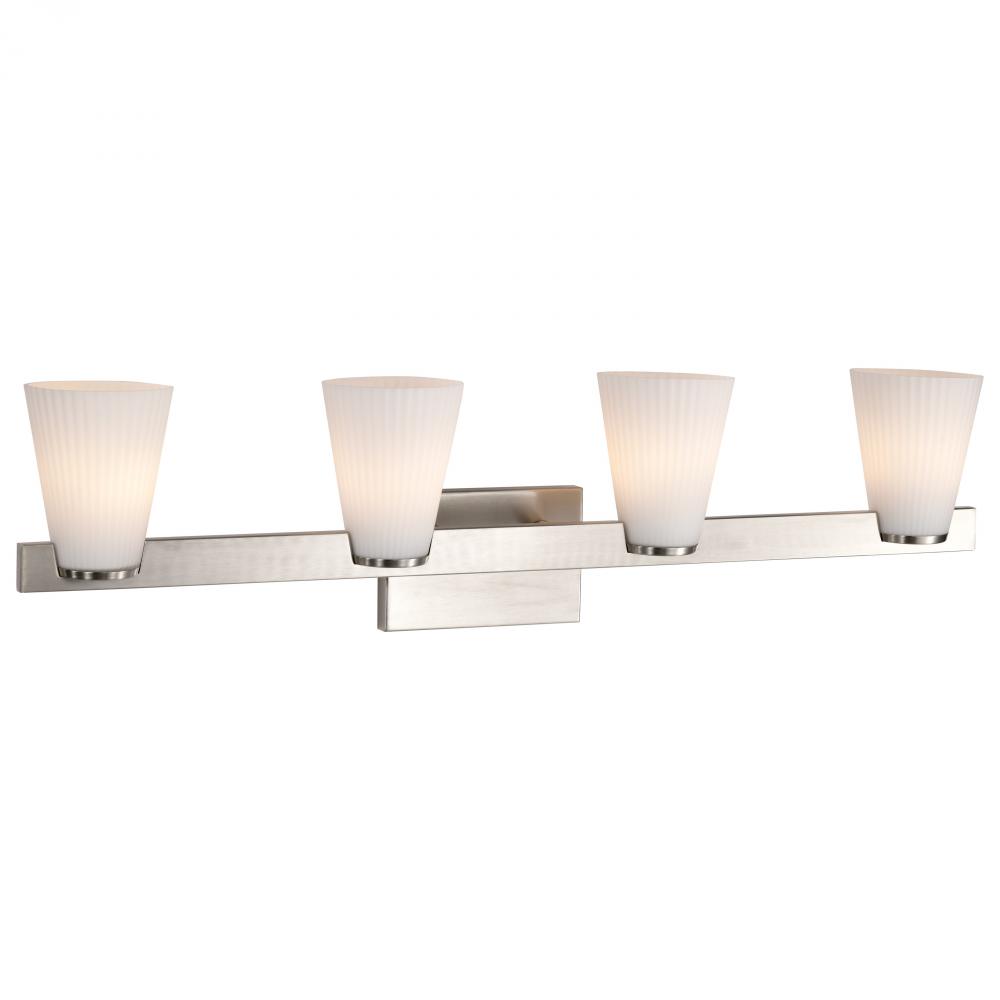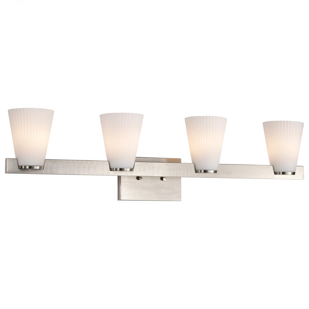 60/8734 - Royale; 4 Light Vanity; Brushed Nickel Finish; Ribbed White Glass