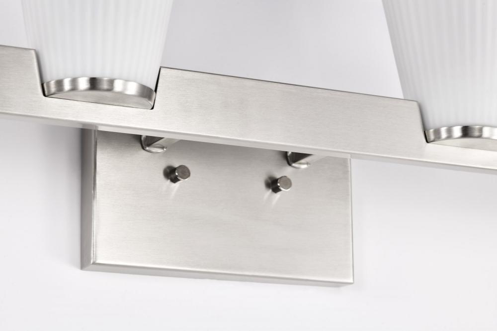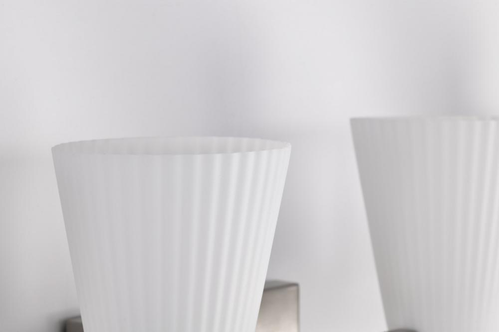 Royale; 2 Light Vanity; Brushed Nickel Finish; Ribbed White Glass