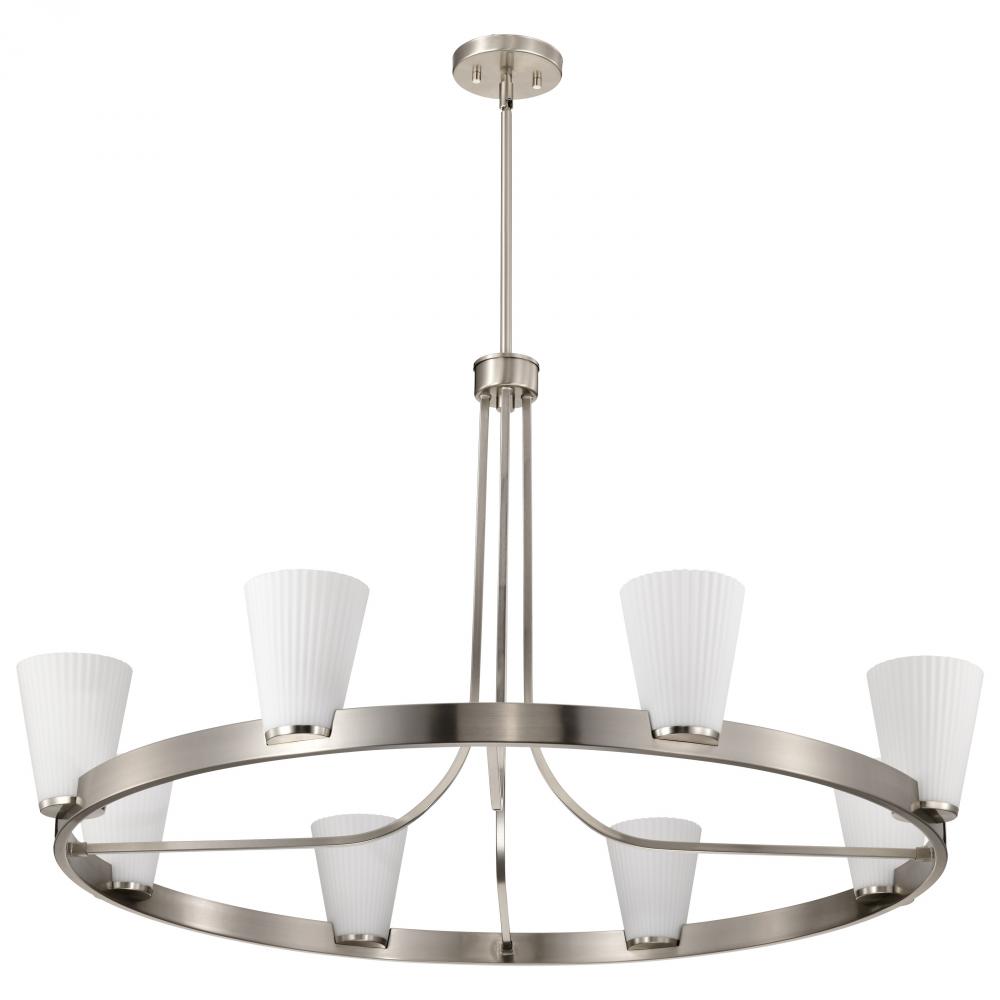 60/8739 - Royale; 8 Light Chandelier; Brushed Nickel Finish; Ribbed White Glass