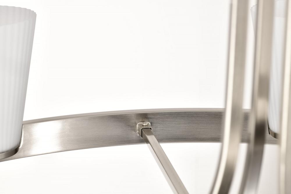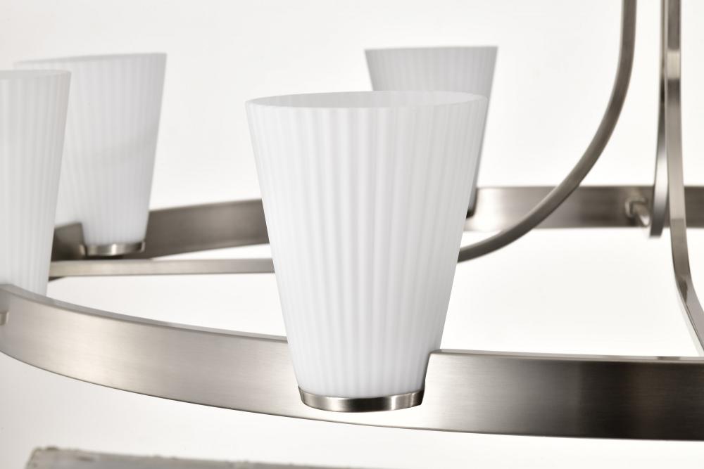 60/8736 - Royale; 6 Light Chandelier; Brushed Nickel Finish; Ribbed White Glass