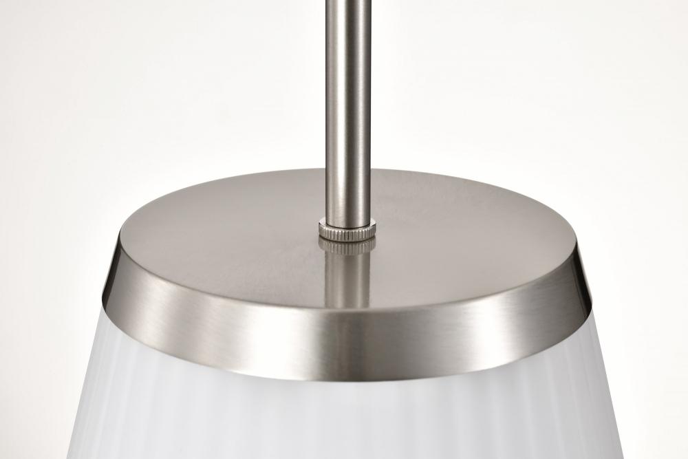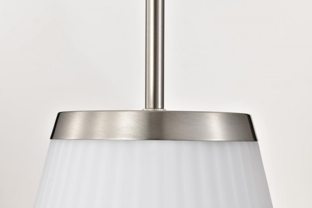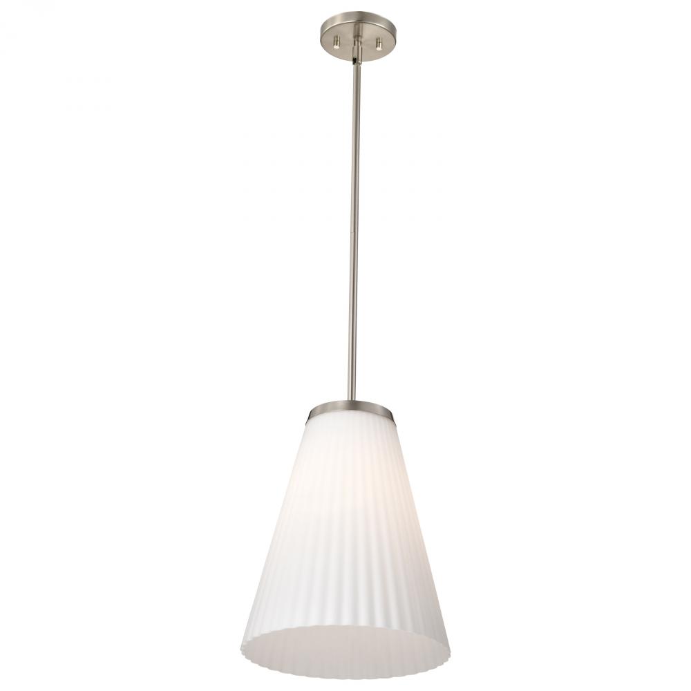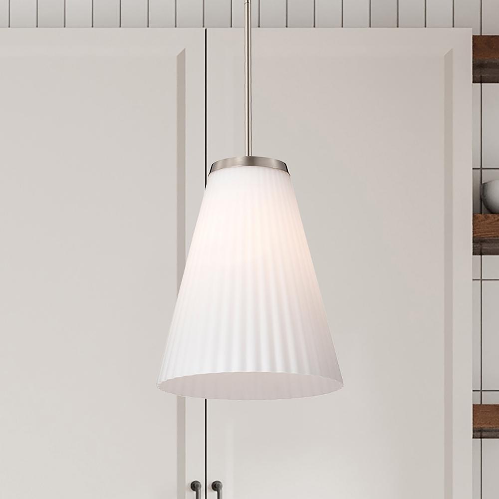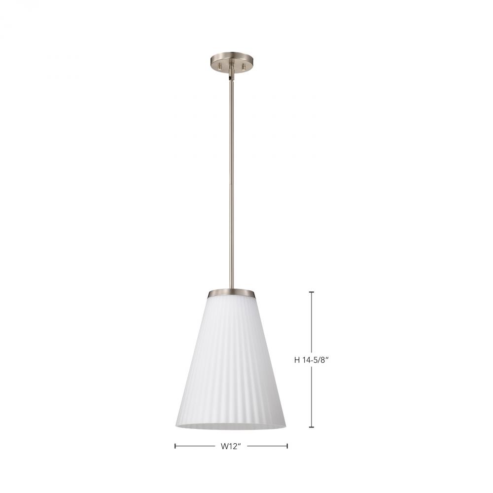 Royale; Mini Pendant; Brushed Nickel Finish; Ribbed White Glass