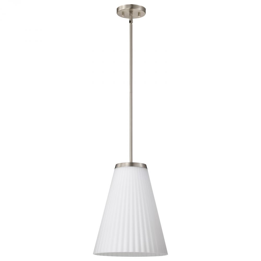 60/8737 - Royale; Mini Pendant; Brushed Nickel Finish; Ribbed White Glass