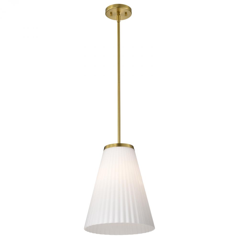 Royale; Large Pendant; Burnished Brass Finish; Ribbed White Glass