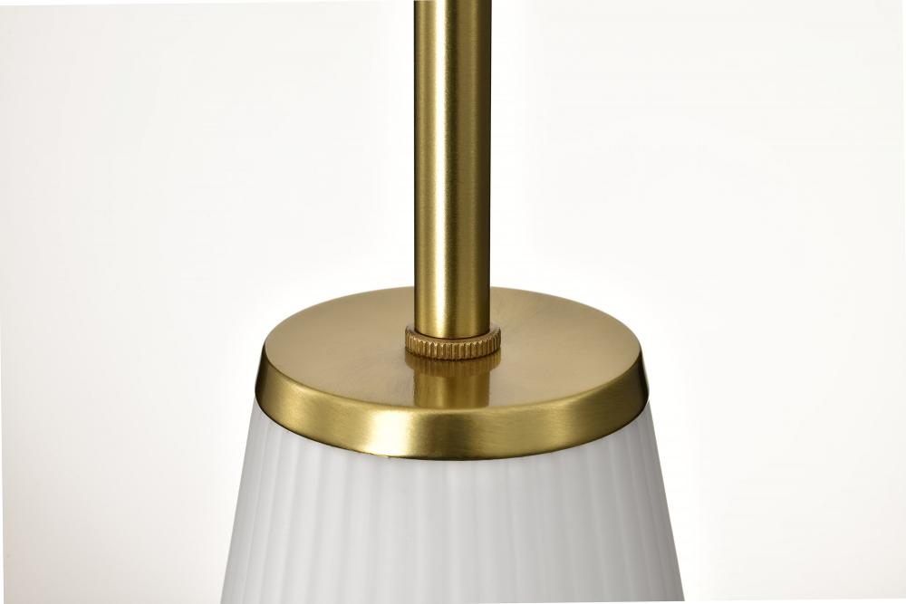 Royale; Mini Pendant; Burnished Brass Finish; Ribbed White Glass