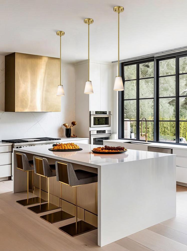 Indulge in the glamour of the Royale 60-8727 one light mini pendant, where sleek Art Deco silhouettes meet modern refinement. The satin white pleated glass adds texture and sophistication, diffusing light with a soft, radiant glow. Finished in burnished br
