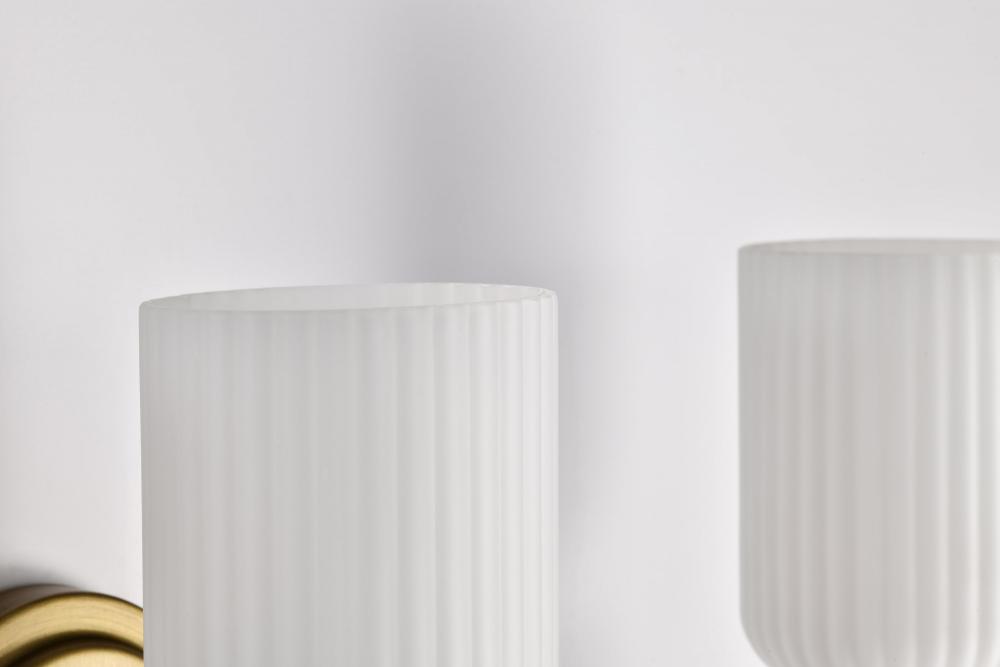 60/8664 - Solara; 4 Light Vanity; Natural Brass Finish; Frosted Ribbed Glass